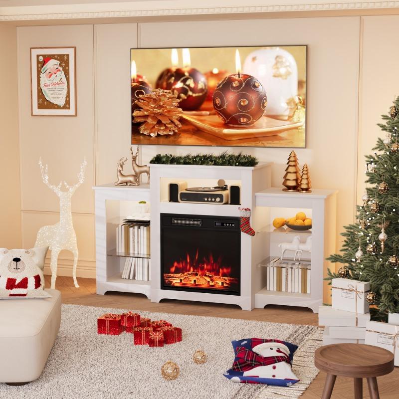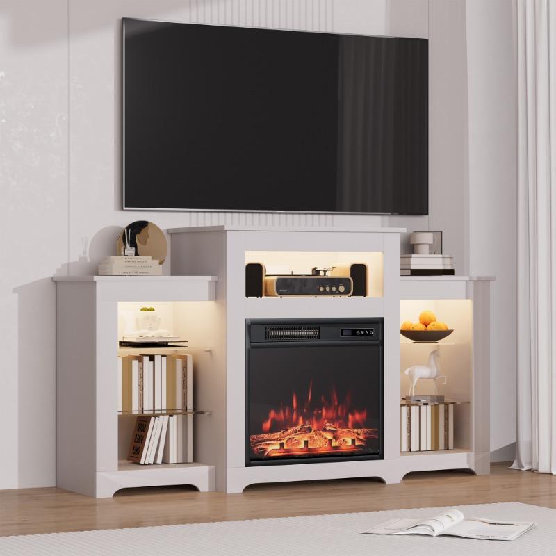 【Energy Saving and Efficiency】The TV cabinet has a built-in 20-inch electric fireplace equipped with a remote control. Small in size and large in energy, the space is perfectly utilized. The electric fireplace is available in two modes: 750W and 1500W. It saves energy while achieving efficient heating. Its heating area can reach 400 square feet, easily transferring heat to every corner of your room. Comes with a 0-9 hour timer, saving worry and energy.