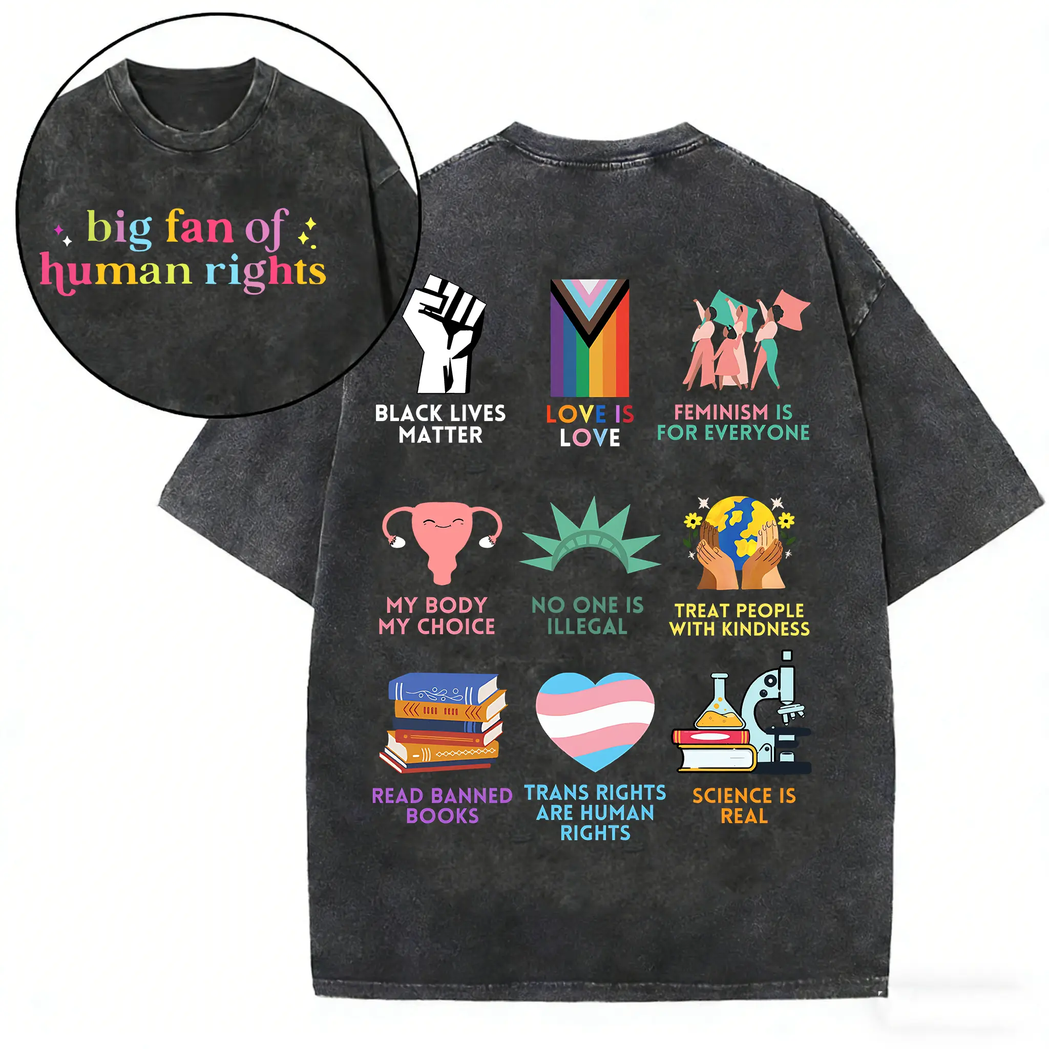Human rights advocate washed cotton T-shirt, human rights themed washed cotton T-shirt