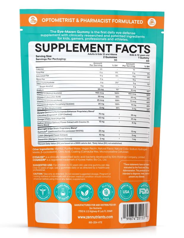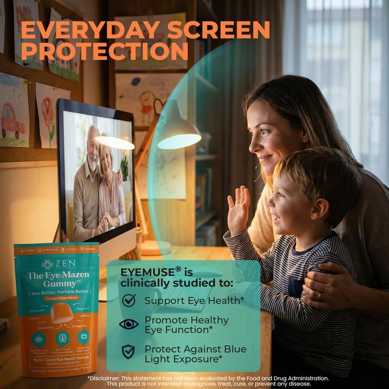 Zen Nutrients Eye-Mazen Gummy (Teens & Adults) is an innovative 10-in-1 powerful eye wellness gummy created for teens & adults in a screen-filled world, where 69% of the population now suffers from Digital Eye Strain.