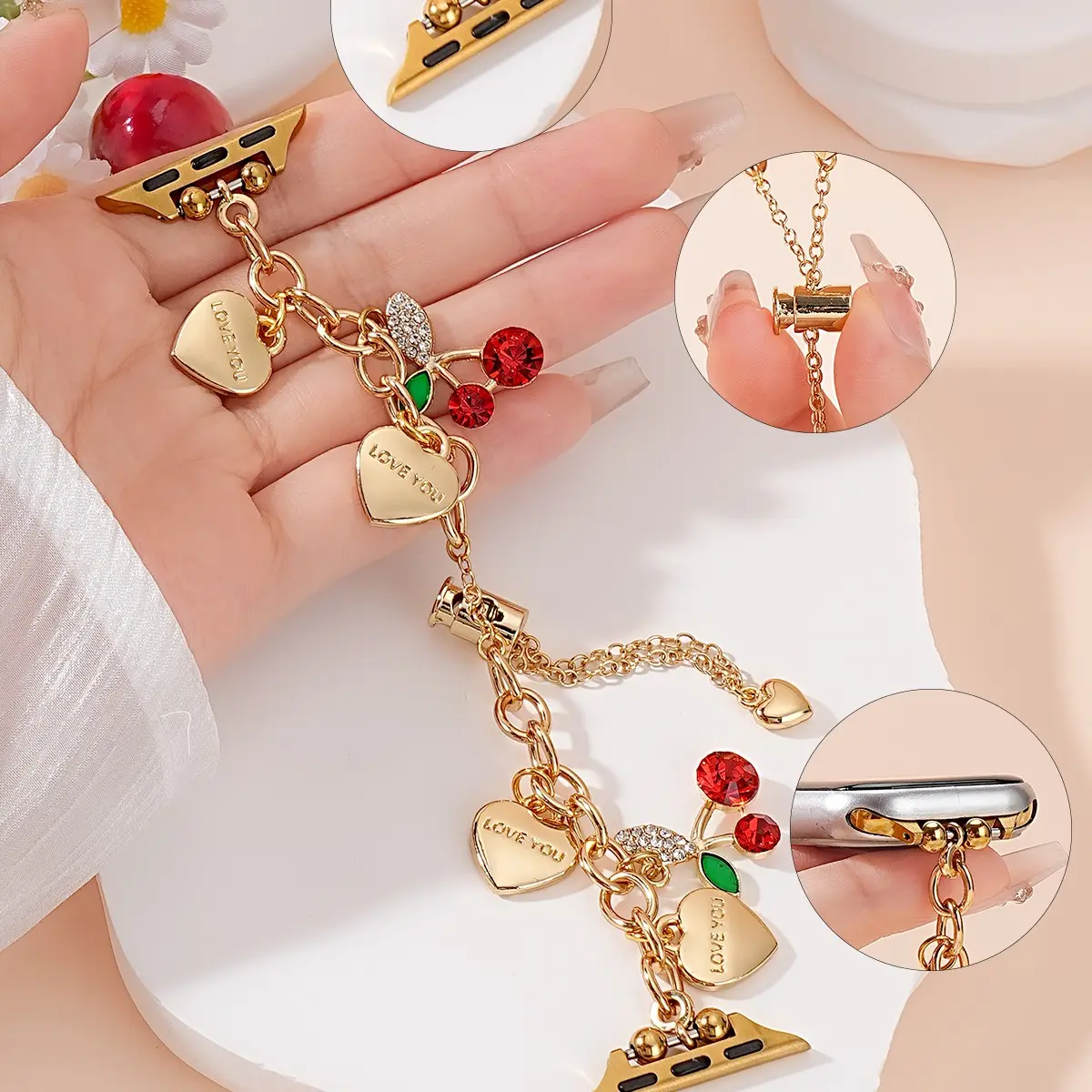 【Heart Cherry Charm】: Features heart cherry charms, adding a unique and charming touch to your Apple Watch band.