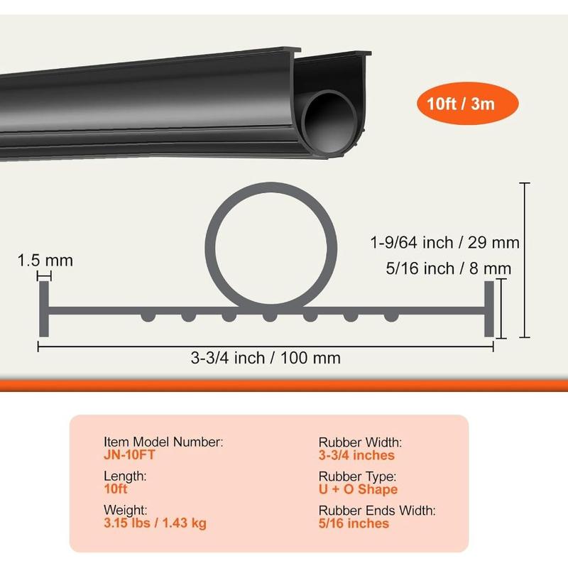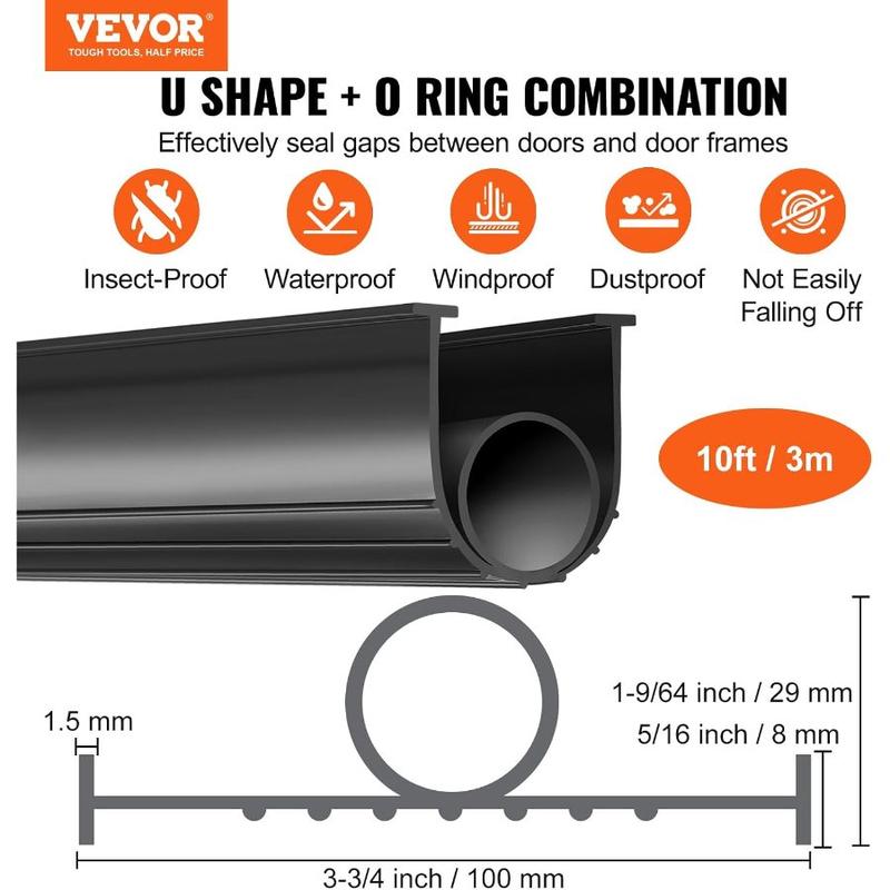 VEVOR Garage Door Seals Bottom Rubber, U Shape+O Ring Garage Door Weather Stripping, Universal Weatherproof Threshold Buffering Sealing Rubber, 5/16 inch T - Ends and 3 3/4 inch Width (20 Ft, Black)VEVOR Garage Door Seals Bottom Rubber, U Shape+O Ring Garage Door Weather Stripping, Universal Weatherproof Threshold Buffering Sealing Rubber, 5/16 inch T - Ends and 3 3/4 inch Width (20 Ft, Black)