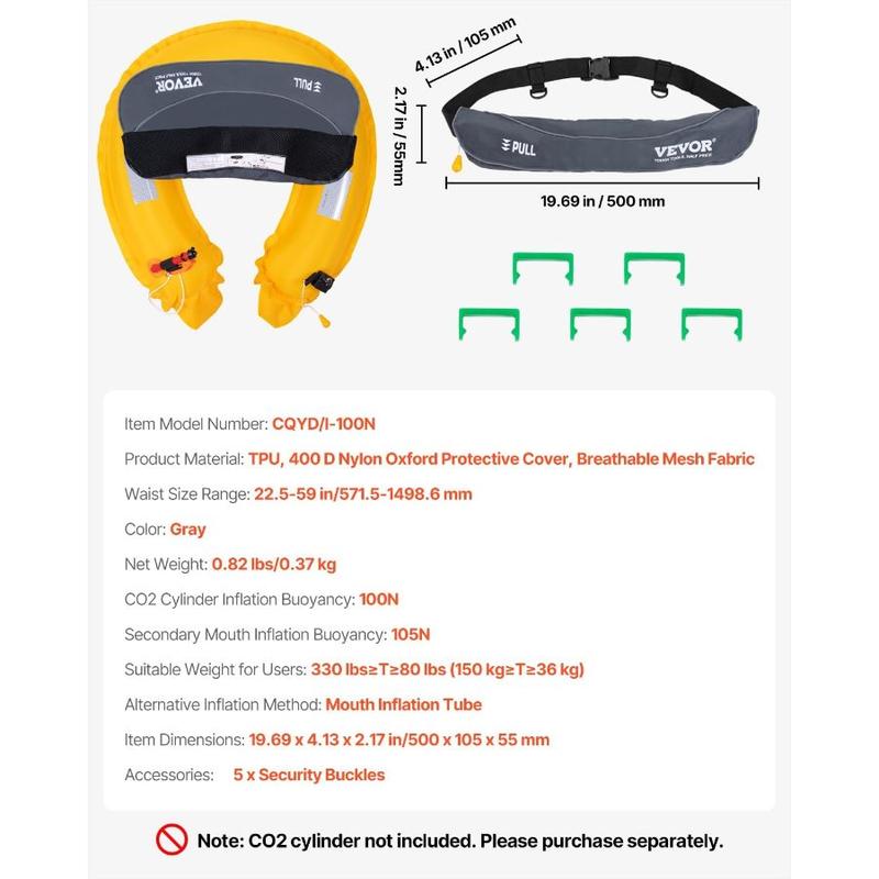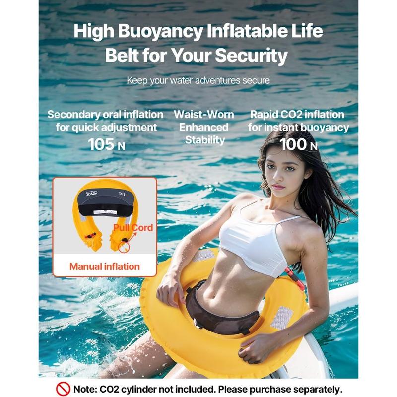VEVOR Manual Inflatable Belt Pack for Adults, 105N Buoyancy, Over 80 Pounds and Up to 59 in Waist Adjustable, Inflatable PFD Waist for SUP Paddelboarding, Kayaking (CO2 Cylinder Not Included)VEVOR Manual Inflatable Belt Pack for Adults, 105N Buoyancy, Over 80 Pounds and Up to 59 in Waist Adjustable, Inflatable PFD Waist for SUP Paddelboarding, Kayaking (CO2 Cylinder Not Included)