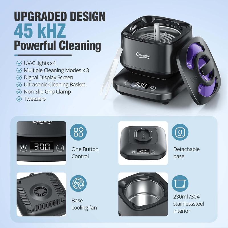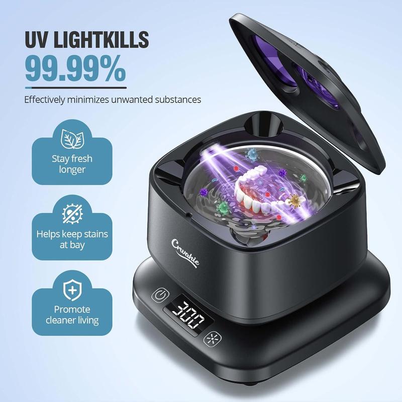 ·【Integrated UV Light Sanitisation】Beyond powerful ultrasonic cleaning, this device includes an independent U-V light sanitisation function. It is specifically designed to provide an additional germ-killing treatment for mouth guards, toothbrush heads, retainers, and other oral care items, ensuring a complete hygiene process from physical cleaning to optical disinfection for total peace of mind.