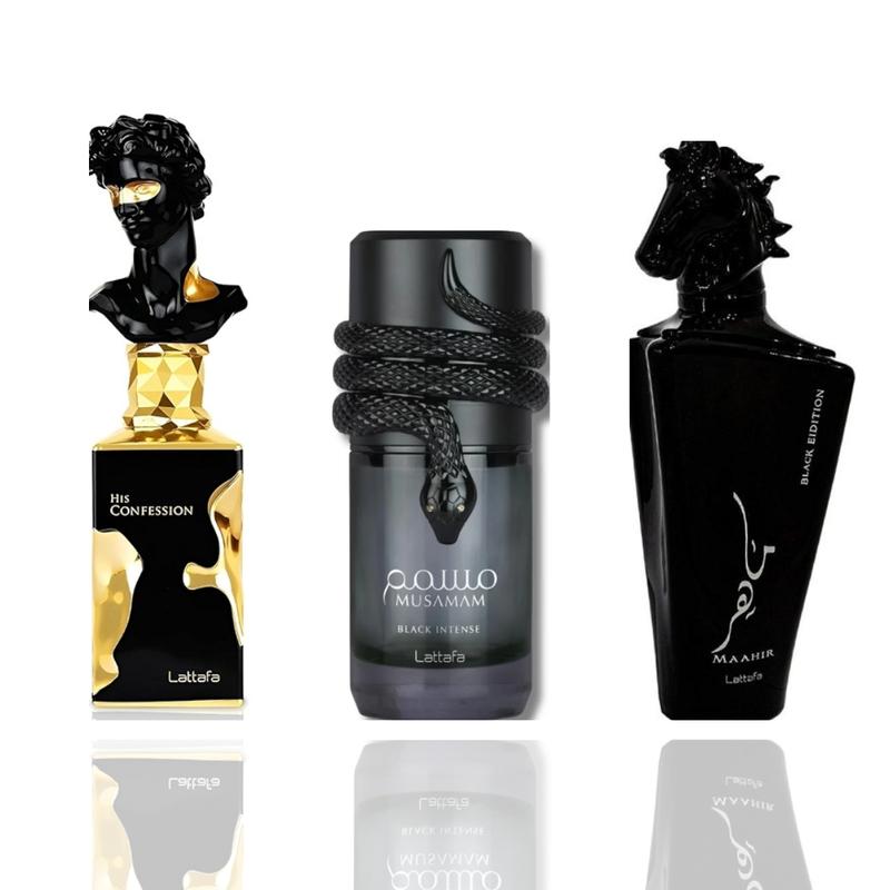 Saffron, spicy notes, rose, amber, smoky woods, oud, musk, and vanilla.
