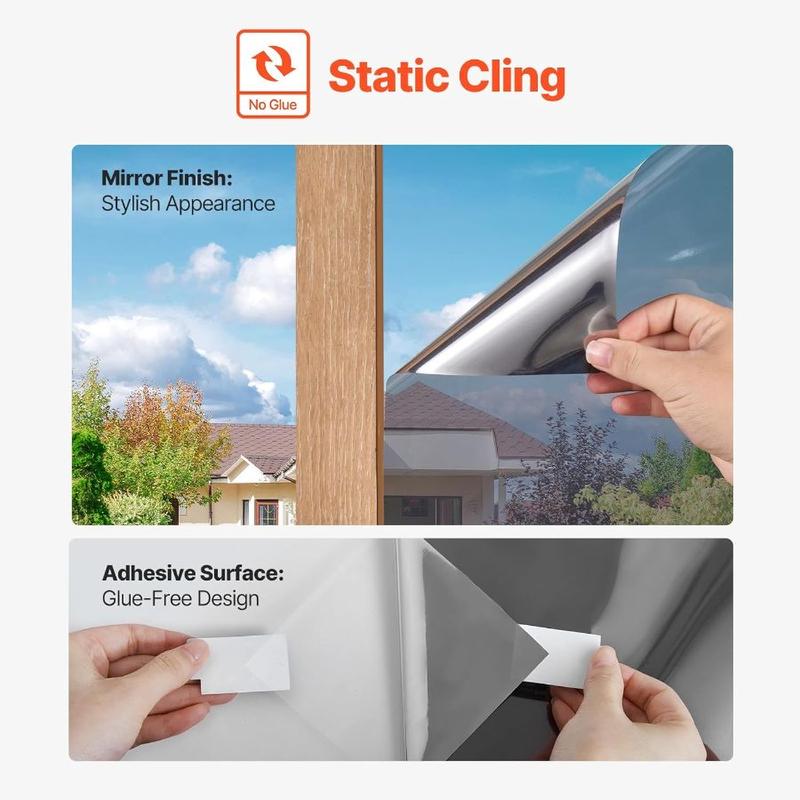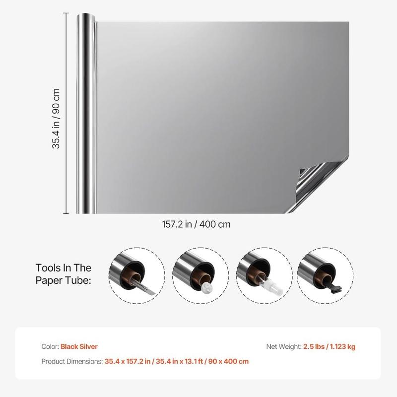 VEVOR Window Privacy Film, One Way Window Tint, Privacy Mirror Reflective Film, Sun Blocking Heat Control Glass, Self - Adhesive, See Out Not in Window Film for Home and Office, Silver, 36 inx 49.3 ftVEVOR Window Privacy Film, One Way Window Tint, Privacy Mirror Reflective Film, Sun Blocking Heat Control Glass, Self - Adhesive, See Out Not in Window Film for Home and Office, Silver, 36 inx 49.3 ft
