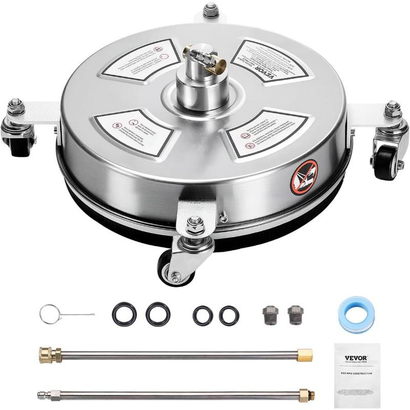 VEVOR 14 Pressure Washer Surface Cleaner, Stainless Steel Pressure Washer Attachments with 4 Wheels, 4000 Max PSI, 1/4 Quick Connector, 2 Spray Nozzles, 2 Extended Wands for Concrete, Patio, DeckVEVOR 14 Pressure Washer Surface Cleaner, Stainless Steel Pressure Washer Attachments with 4 Wheels, 4000 Max PSI, 1/4 Quick Connector, 2 Spray Nozzles, 2 Extended Wands for Concrete, Patio, Deck