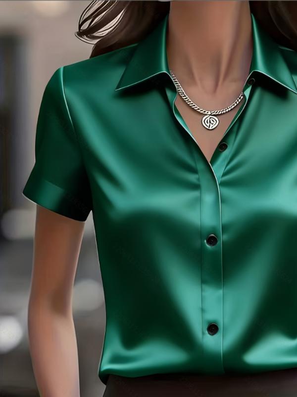 Elegant Women's Satin Short Sleeve Blouse, Plus Size Commuter Style, High-End Drapey Career Top, Comfortable Office Wear