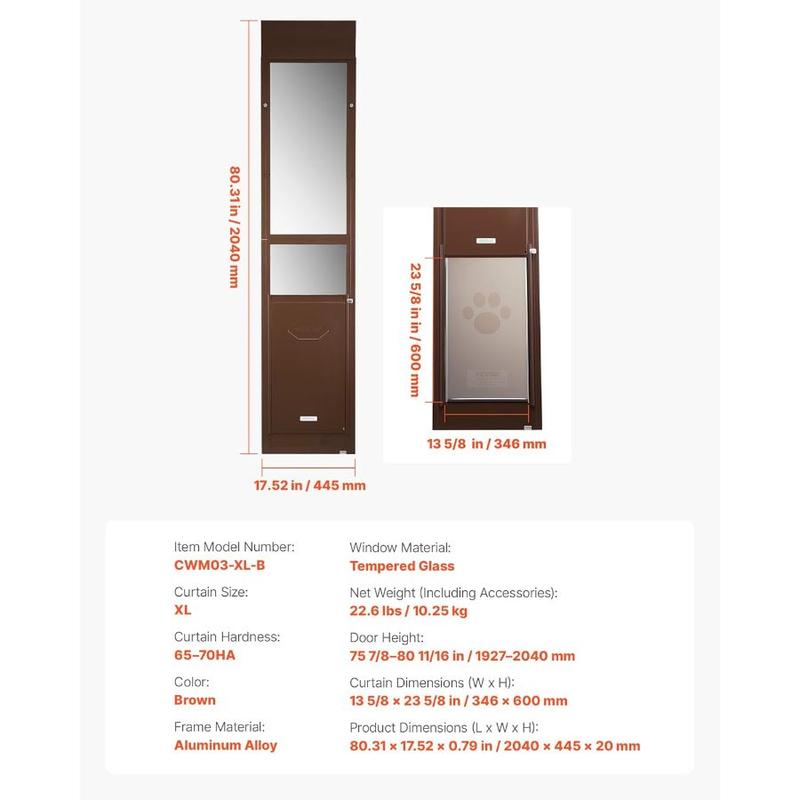 VEVOR Dog Door for Sliding Glass Door, 75 7/8 - 80 11/16 Adjustable Height Doggy Door for Sliding Doors, Aluminum Frame Tempered Glass Pet Door with Hinge Structure Flap and Lock for Large - Sized DogsVEVOR Dog Door for Sliding Glass Door, 75 7/8 - 80 11/16 Adjustable Height Doggy Door for Sliding Doors, Aluminum Frame Tempered Glass Pet Door with Hinge Structure Flap and Lock for Large - Sized Dogs