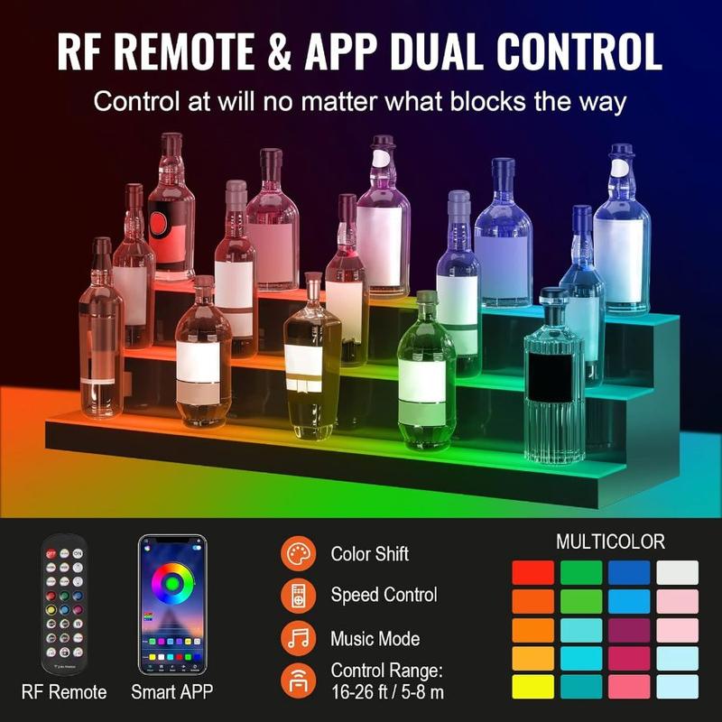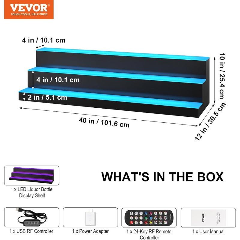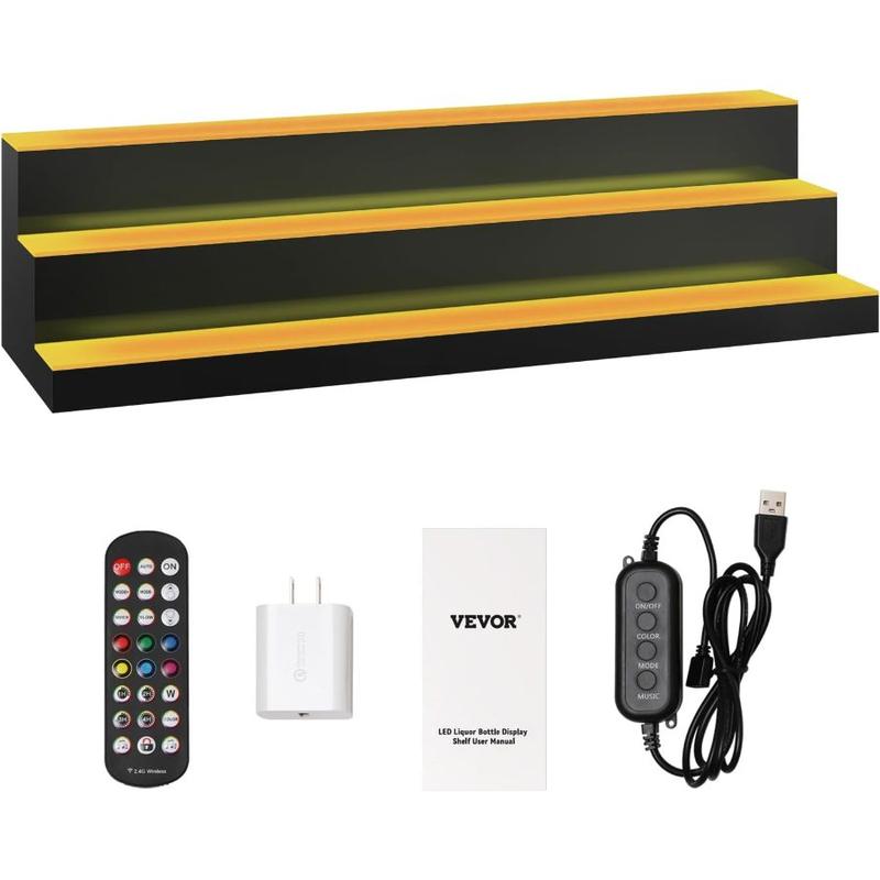 VEVOR LED Lighted Liquor Bottle Display Shelf, Square 48 Inches, Supports USB, Illuminated Home Bar Shelf w/RF Remote App Control 7 Static Colors 1 - 4 H Timing, Acrylic Wall - Mounted ShelfVEVOR LED Lighted Liquor Bottle Display Shelf, Square 48 Inches, Supports USB, Illuminated Home Bar Shelf w/RF Remote App Control 7 Static Colors 1 - 4 H Timing, Acrylic Wall - Mounted Shelf