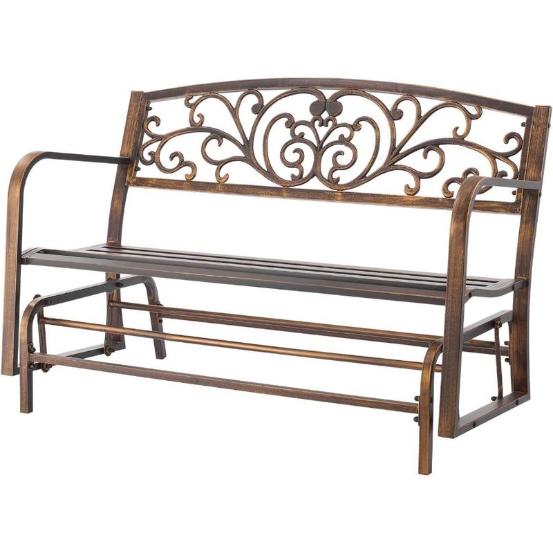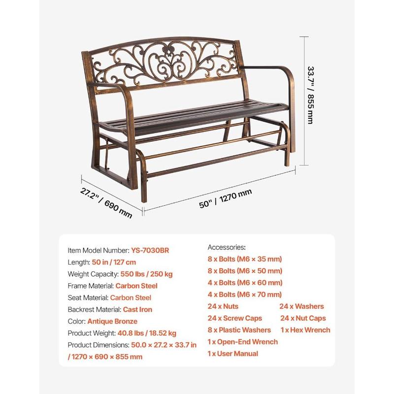 VEVOR Outdoor Bench, 50 inch, Carbon Steel Metal Frame with Cast Iron Backrest and Round Edge Armrests, Weatherproof Outside Glider Bench for Patio, Garden, Park, Yard, Front Porch, Antique BronzeVEVOR Outdoor Bench, 50 inch, Carbon Steel Metal Frame with Cast Iron Backrest and Round Edge Armrests, Weatherproof Outside Glider Bench for Patio, Garden, Park, Yard, Front Porch, Antique Bronze