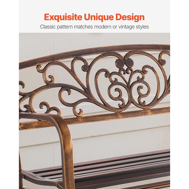 5. VEVOR Outdoor Bench, 50 inch, Carbon Steel Metal Frame with Cast Iron Backrest and Round Edge Armrests, Weatherproof Outside Glider Bench for Patio, Garden, Park, Yard, Front Porch, Antique Bronze