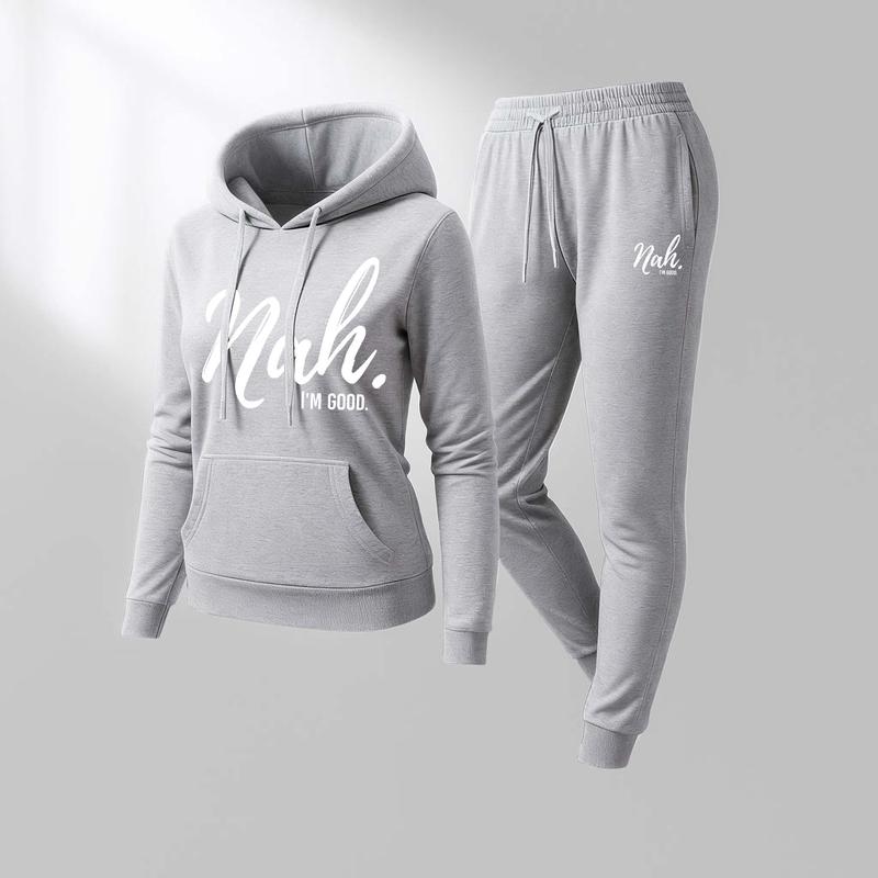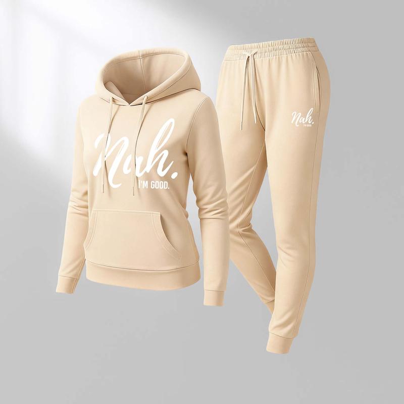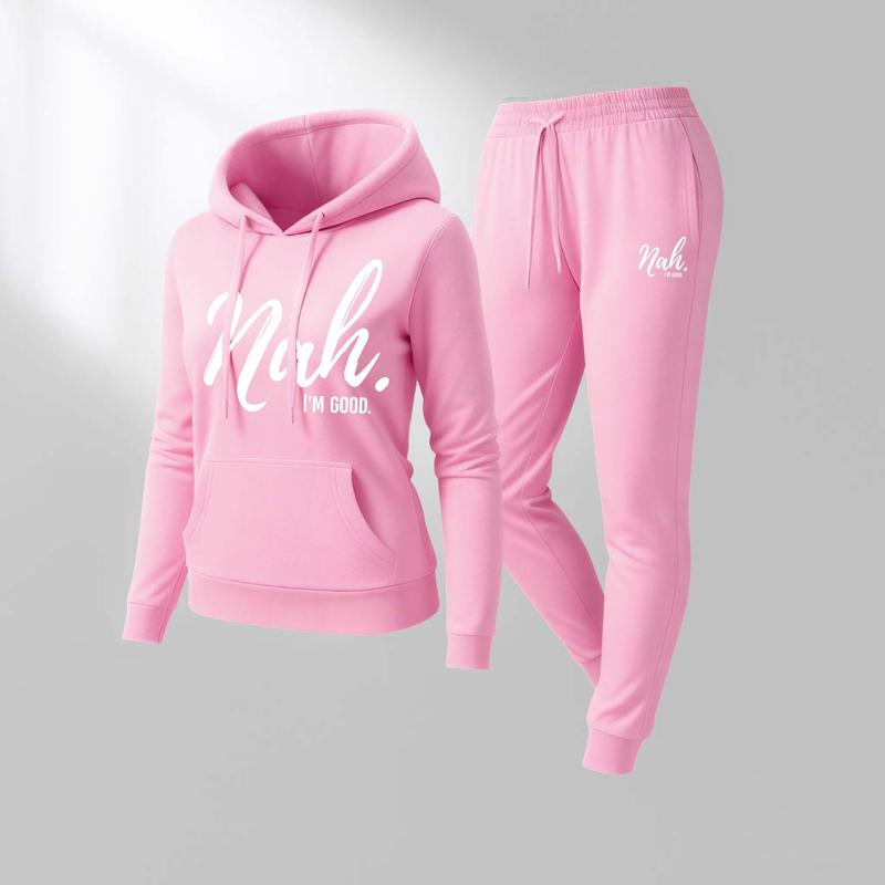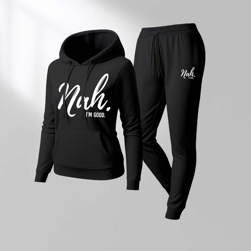 Women's Nah Cartoon Print Hoodie And Drawstring Track Pants Set, Casual Sportswear, Long-Sleeved Hooded Jacket And Pants, Suitable For Autumn And Winter, Everyday Wear, Indoor And Outdoor Sportswear, Casual Sportswear.