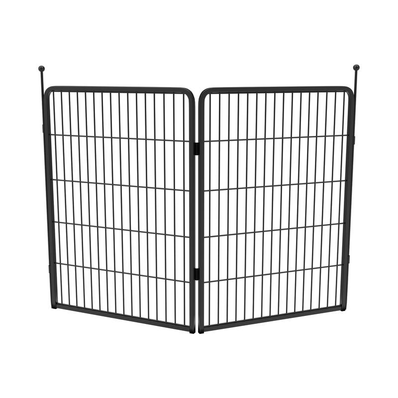 【Sturdy Construction】Constructed from durable full-metal materials, this fence offers a robust and enduring enclosure for your furry friend. The metal poles can be easily inserted into the ground, ensuring solid stability. We recommend thoroughly inserting the metal stakes and ensuring that the tops are level with the panels for optimal sturdiness.