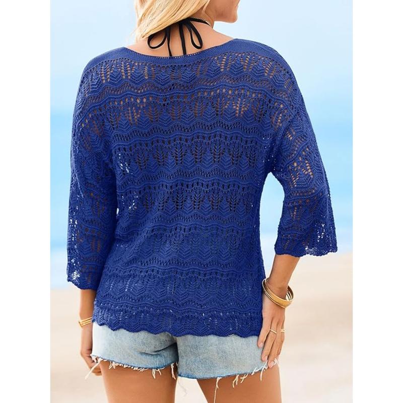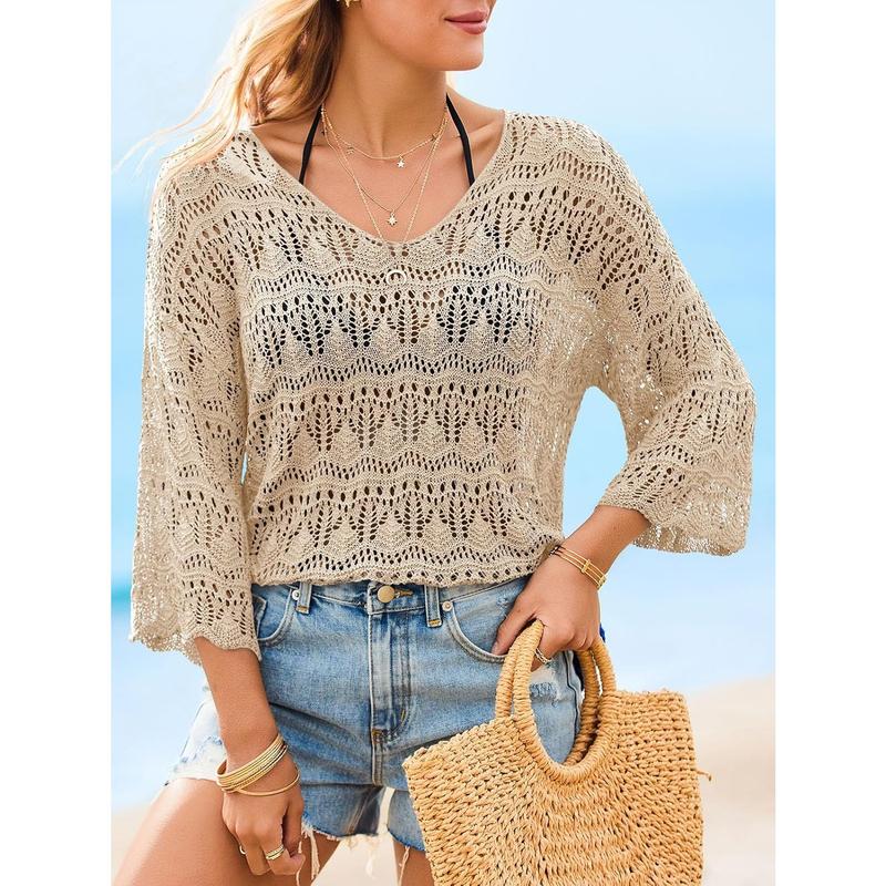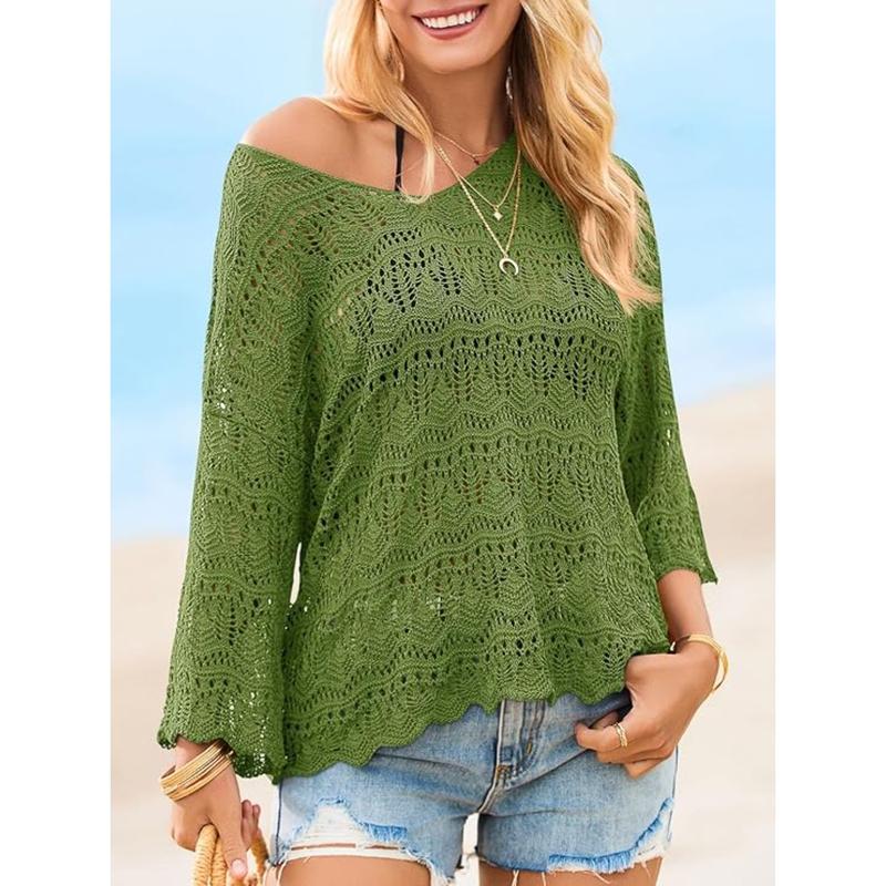 5. Saodimallsu Womens Crochet Cover Up Tops 3/4 Sleeve V Neck Summer Boho Knit Beach Coverups 2026 Resort Wear