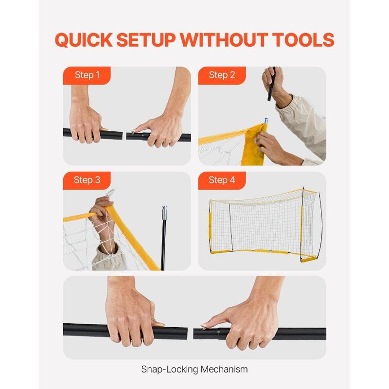VEVOR Portable Soccer Goal, 12x6 ft Adults Kids Backyard Soccer Net, Large Practice Soccer Net, Steel Fiberglass Structure Training Goal Set, All - Weather Outdoor Soccer Goals with Carry Bag, OrangeVEVOR Portable Soccer Goal, 12x6 ft Adults Kids Backyard Soccer Net, Large Practice Soccer Net, Steel Fiberglass Structure Training Goal Set, All-Weather Outdoor Soccer Goals with Carry Bag, Yellow High-Quality Netting Robust Steel & Fiberglass Construction Effortless Assembly Train