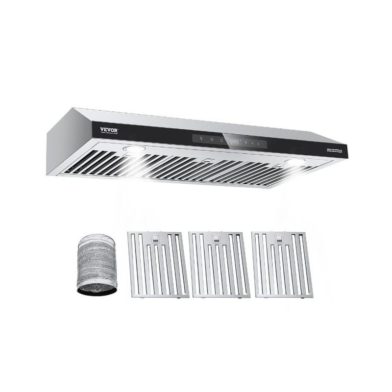 VEVOR Under Cabinet Range Hood, 30 Inch Kitchen Vent Hood, 900CFM Dual Motors Stainless Steel Stove Hood, with Gesture Touch Control, LED Light, and 4 - Speed Exhaust FanVEVOR Under Cabinet Range Hood, 36 Inch Kitchen Vent Hood, 900CFM Dual Motors Stainless Steel Stove Hood, with Gesture & Touch Control, LED Light, and 4-Speed Exhaust Fan 900 CFM Suction Power Easy-to-Clean Structure Advanced Gesture & Touch Controls Ultra-Quiet Operation Easy Assembly Adjustable Dimmable
