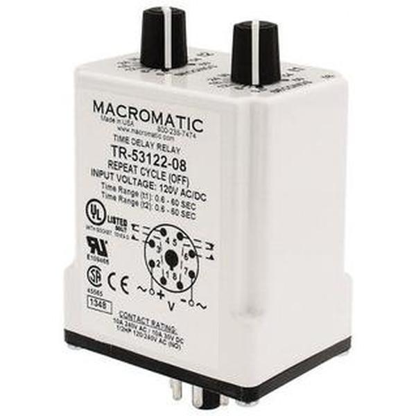 Macromatic 8 Pin, Multiple Range DPDT Time Delay Relay 10 Contact Amp, 120 VAC/VDC, Knob TR-53122-08