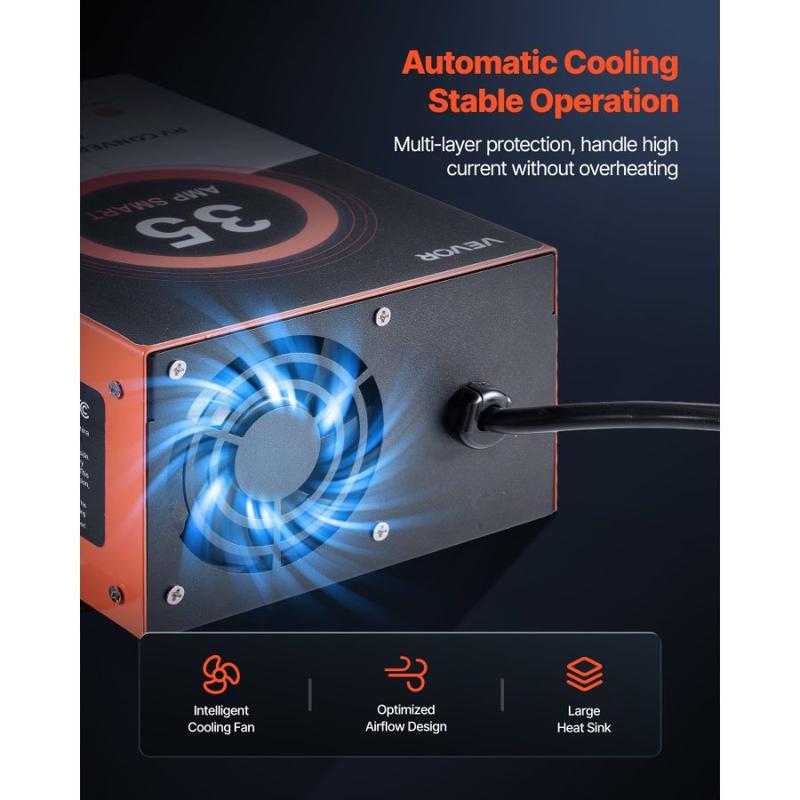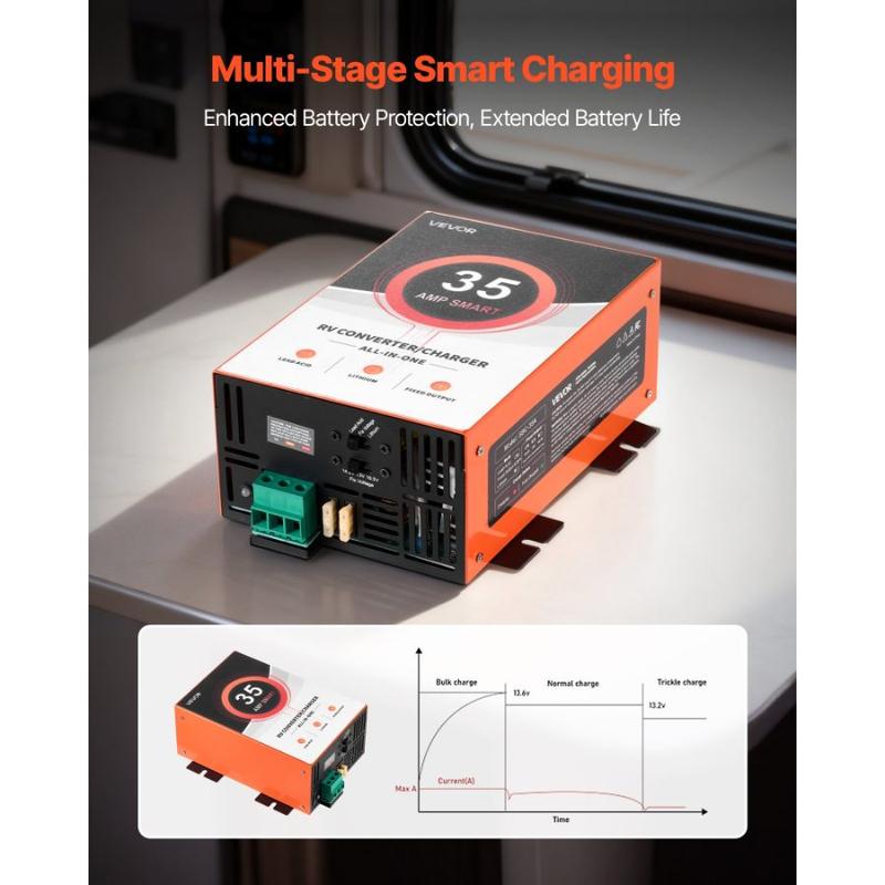 VEVOR RV Power Converter, 65 Amp, 110V AC to 12V DC RV Converter Battery Charger, Multi Stage Smart Charging, 13V to 16.5V Operating Range, Compatible with Lithium Lead Acid Battery, for CamperVEVOR RV Power Converter, 35 Amp, 110V AC to 12V DC RV Converter Battery Charger, 4 Stage Smart Charging, 13V to 16.5V Operating Range, Compatible with Lithium Lead Acid Battery, for Camper Trailer Built-In Cooling Fan Dedicated Charging Mode Security Protection Comprehensive
