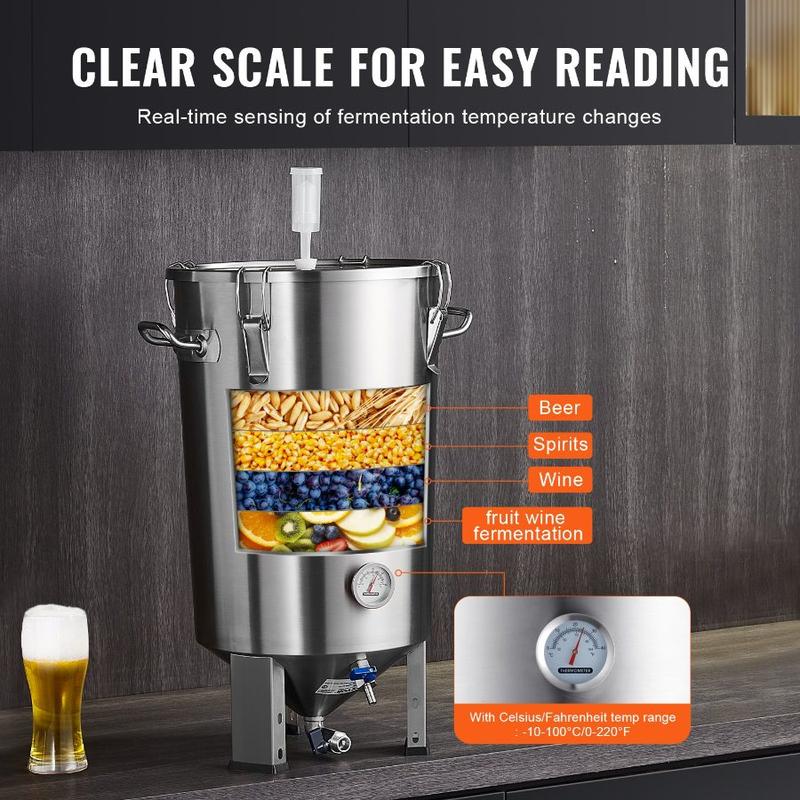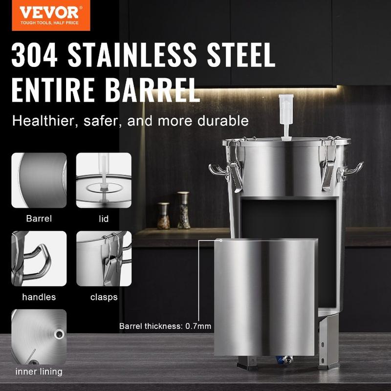 VEVOR 304 Stainless Steel Kettle, 16 GALLON Beer Brew Fermentor, Brew Bucket Fermentor for Brewing, Home Brewing Supplies with Base, Kettle Stock Pot Includes Lid, Handle, Valve, Spigot, ThermometerVEVOR 304 Stainless Steel Kettle, 8 GALLON Beer Brew Fermentor, Brew Bucket Fermentor for Brewing, Home Brewing Supplies with Base, Kettle Stock Pot Includes Lid, Handle, Valve, Spigot, Thermometer Premium Material Excellent Sealing Proper Ventilation Temperature Display Large