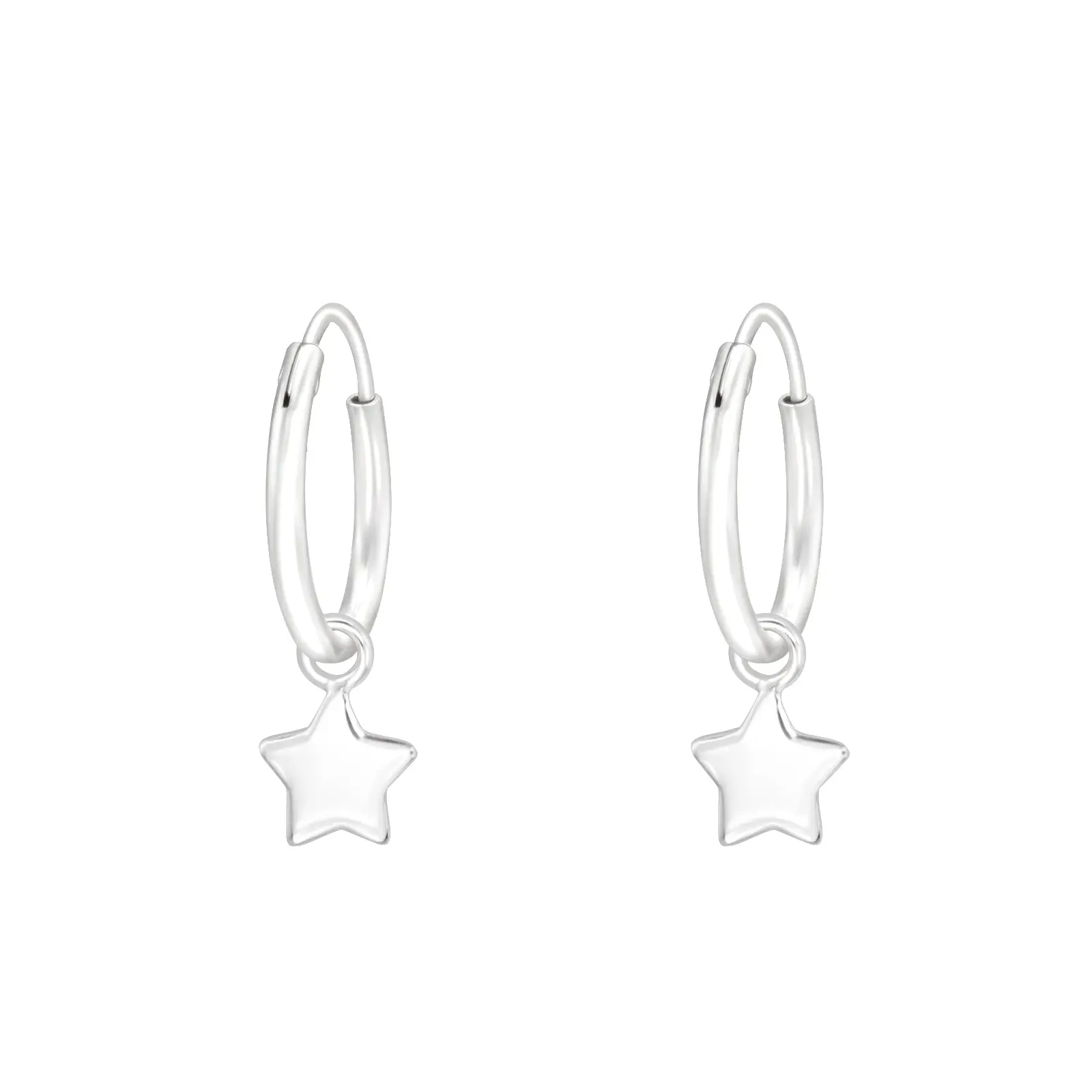 Dangling Star 12mm Hoop Earrings - Pair - 925 Sterling Silver