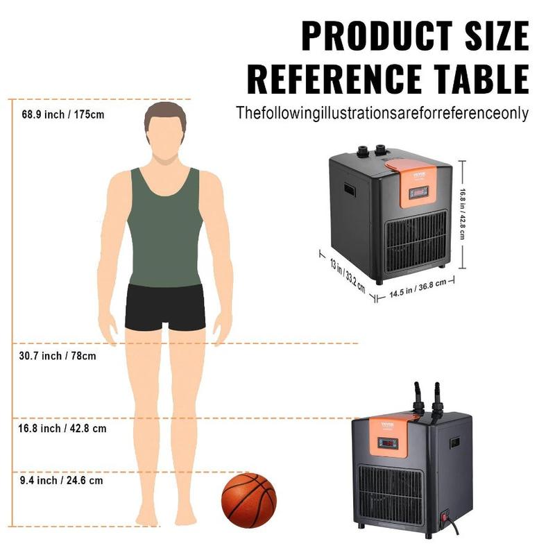 VEVOR Aquarium Chiller 150 Gallon, 1/2 HP Water Chiller for Hydroponics, Fast Cooling for Fish Tank, Axolotl, Coral Reef, Quiet Refrigeration Compressor, Titanium Evaporator, Complete FittingsVEVOR Aquarium Chiller, 92 Gal 348 L, 1/4 HP Hydroponic Water Chiller, Quiet Refrigeration Compressor for Seawater and Fresh Water, Fish Tank Cooling System with Pump/Hose, for Jellyfish, Coral Reef Constant Stable Temperature High-efficient Compressor Premium Titanium Evaporator Excellent