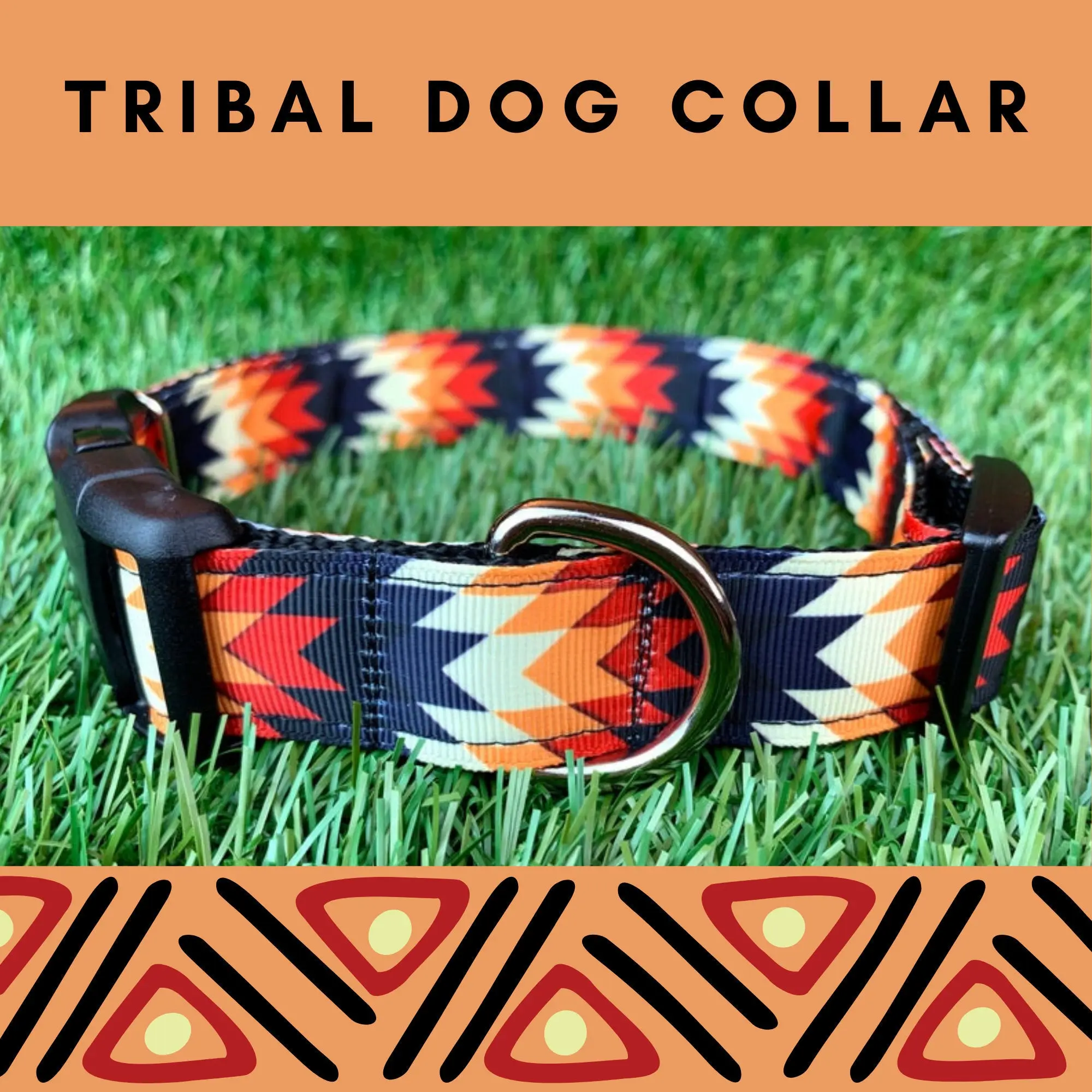 Black Orange Southwest Tribal Aztec Native Dog Collar