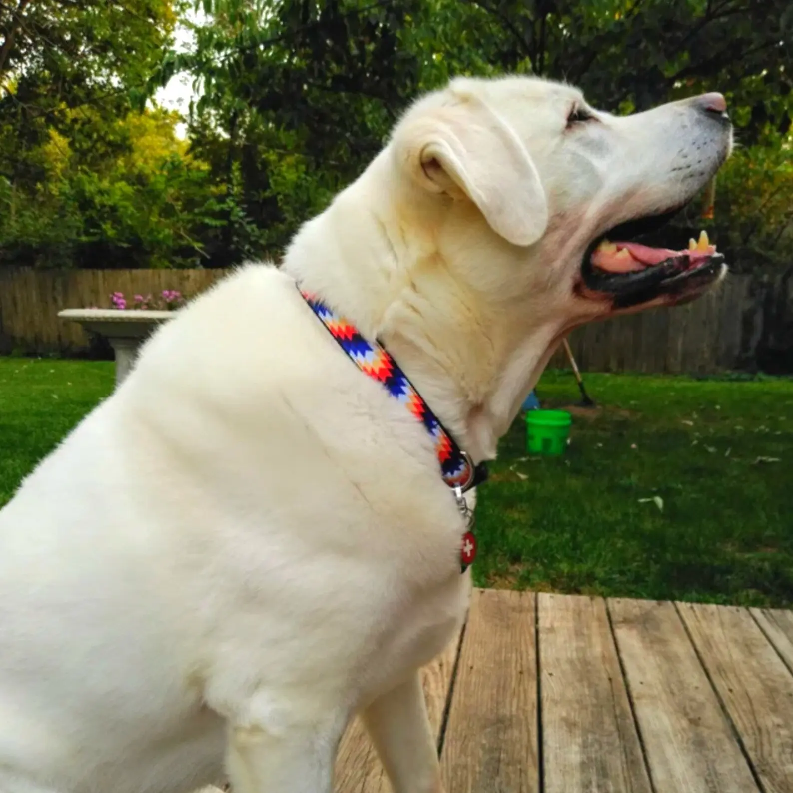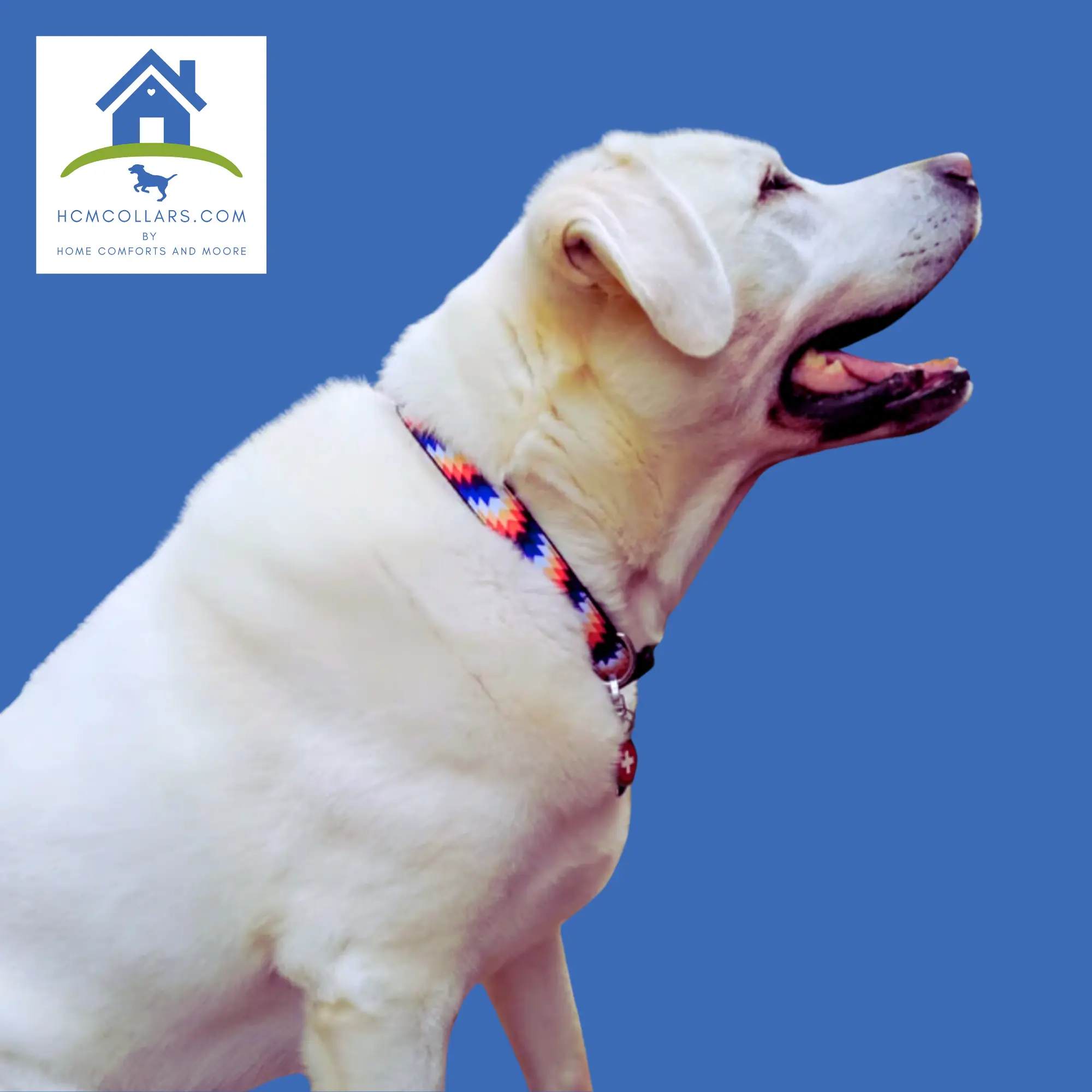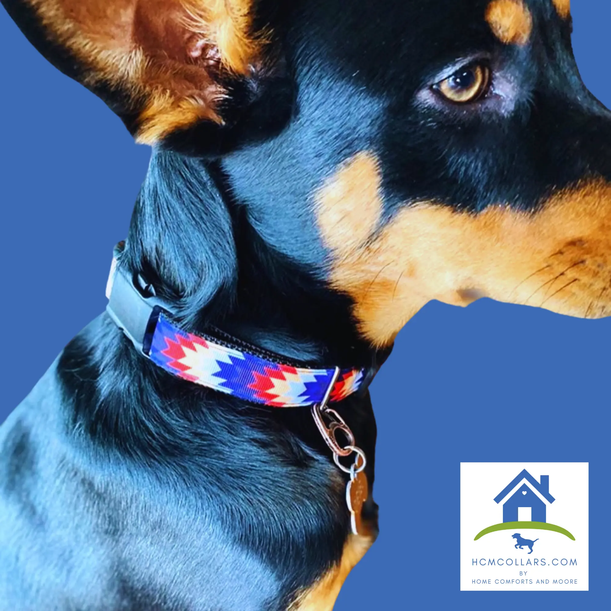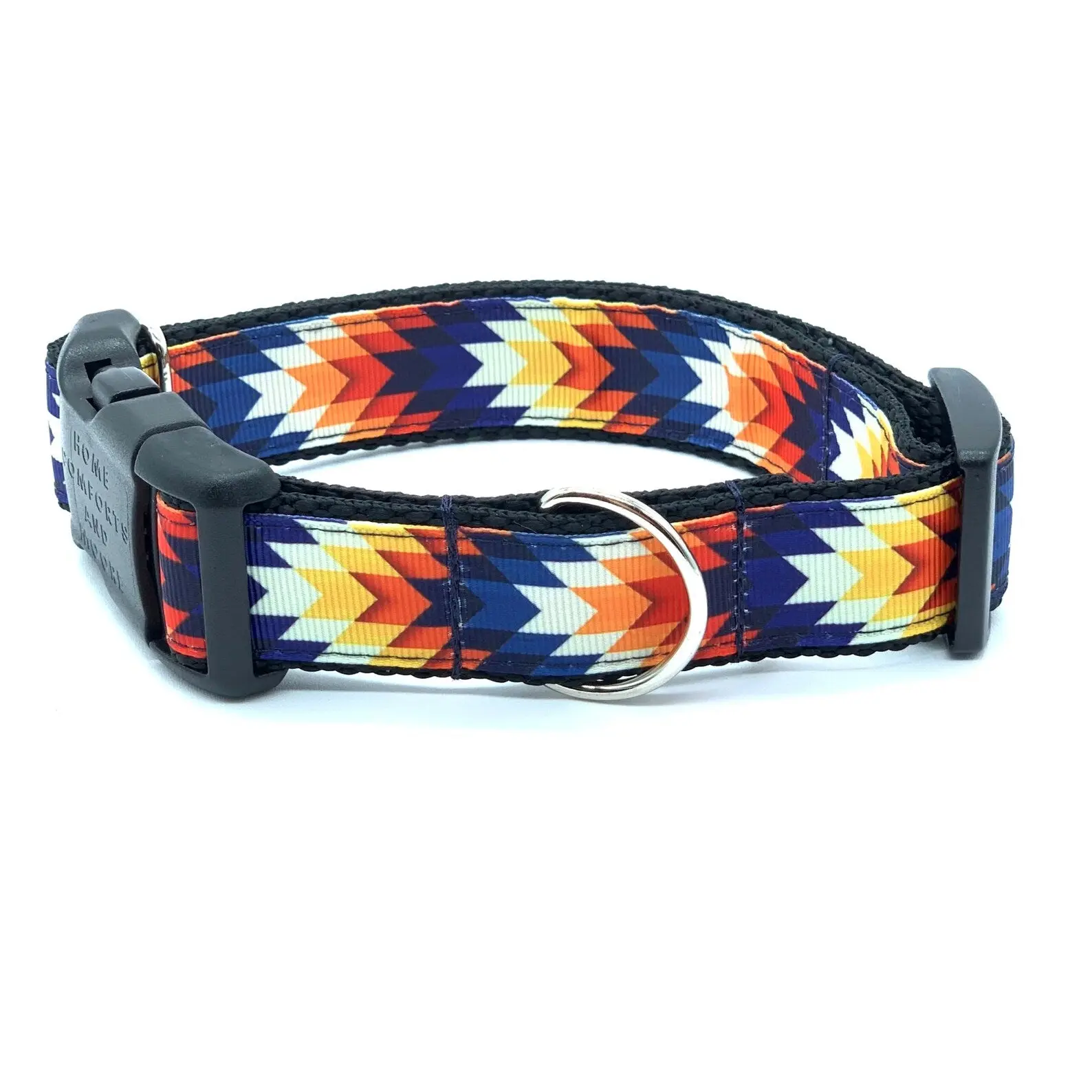 Your pup will look even more stylish with this Blue Orange Southwest Tribal Aztec Native Dog Collar! Cute, fun and comfortable, it's perfect for any active pup. Express your dog's personality and keep him safe - there's nothing better!