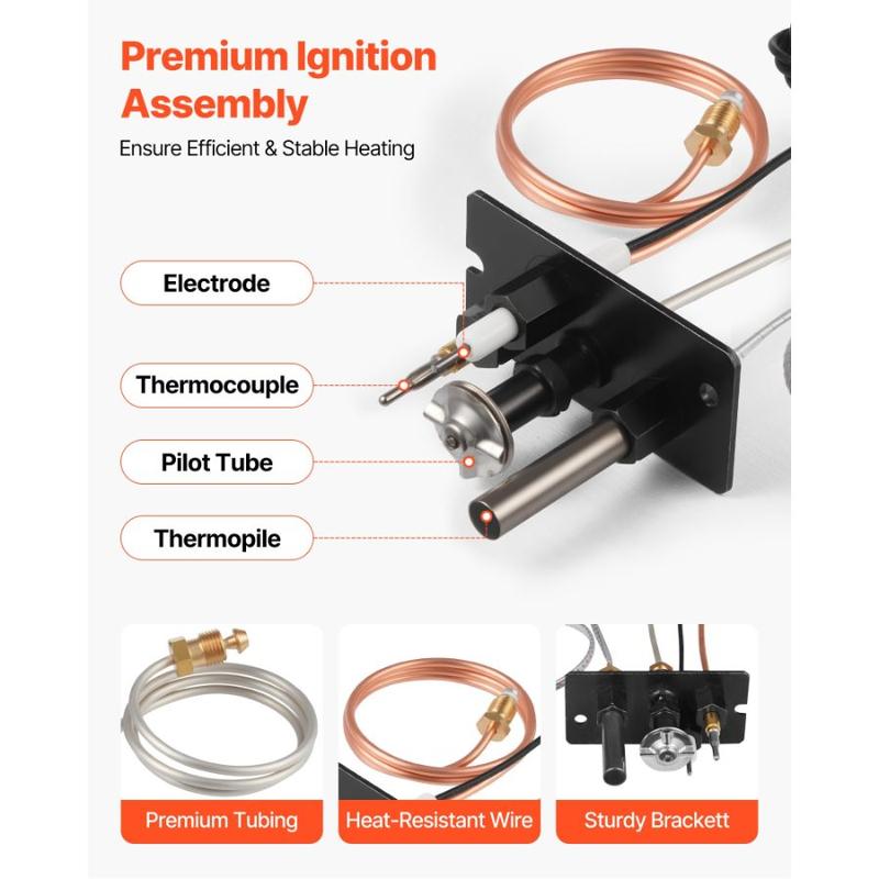 VEVOR Gas Pilot Assembly, OE 485 - 510A, 4021 - 736, 2103 - 010 Fireplace Gas Pilot Assembly Kit, Natural Gas Ignition Replacement, Compatible with Quadra - Fire, Heat Glo, Heatilator Models, Black