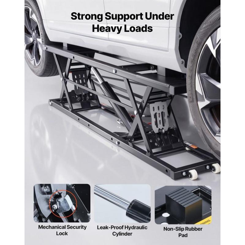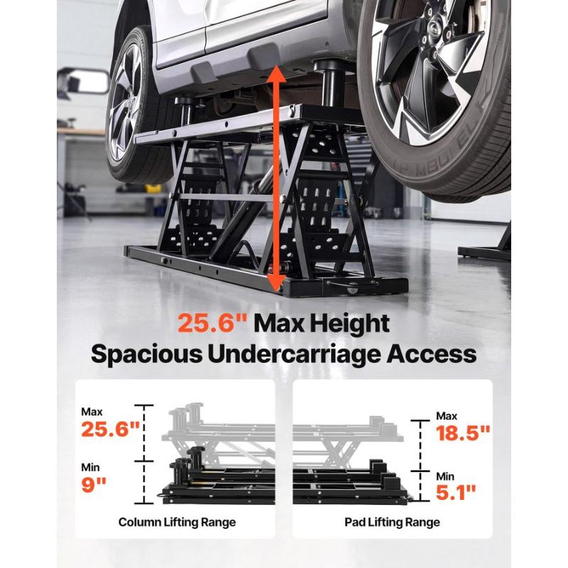VEVOR Portable Car Lift, 5000 lbs Capacity, Heavy Duty Quick Lift with 25.6 Max Height, Pneumatic Pump, Wheels, 4 Rubber Pads 4 Lifting Columns for Cars, Compact SUVs, Mini Trucks, Garage or ShopVEVOR Portable Car Lift, 5000 lbs Capacity, Heavy Duty Quick Lift with 25.6" Max Height, Pneumatic Pump, Wheels, 4 Rubber Pads & 4 Lifting Columns for Cars, Compact SUVs, Mini Trucks, Garage or Shop Foot Pedal Control Durable Hydraulic Hoses Non-Slip Support Adjustable