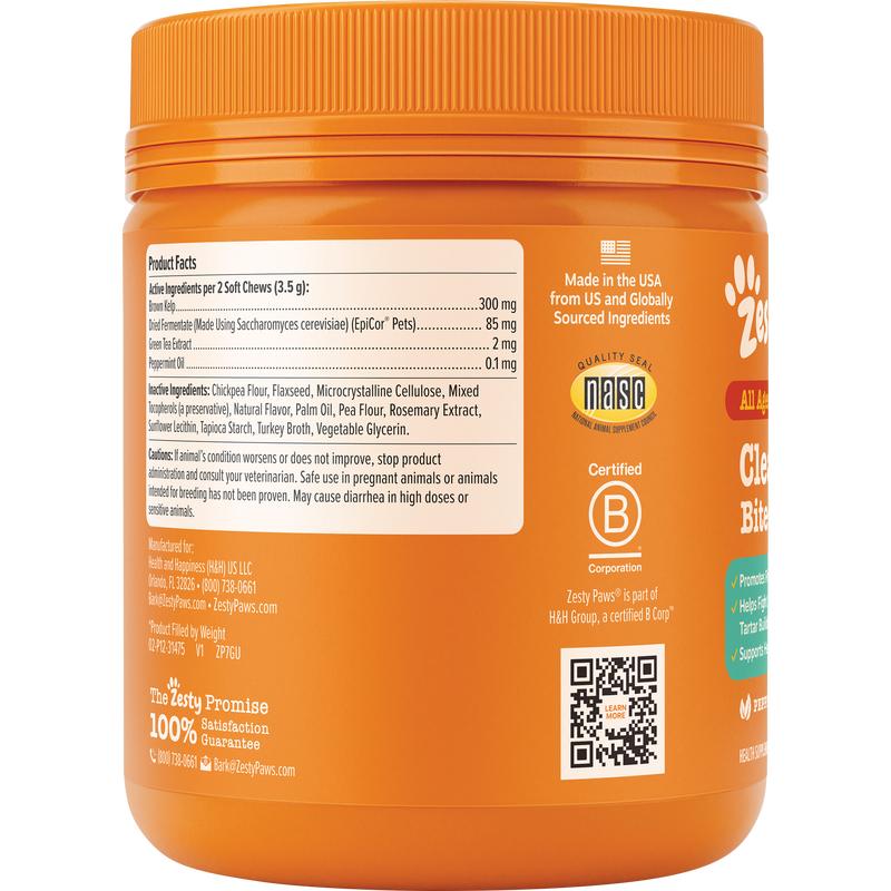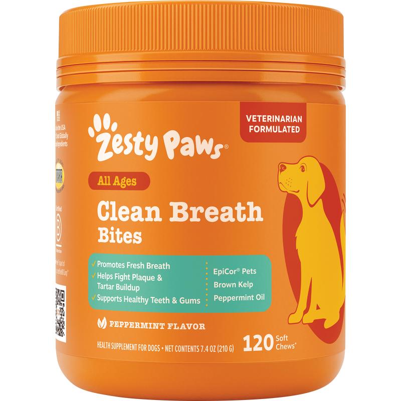 When it comes to dental health products, dogs deserve to be spoiled with special treatment to make sure their chompers stay good and healthy. So, when their breath might stink a little too much, Zesty Paws Clean Breath Bites can show them that you care! This supplement makes better breath for dogs feel as easy as 1, chew, 3!