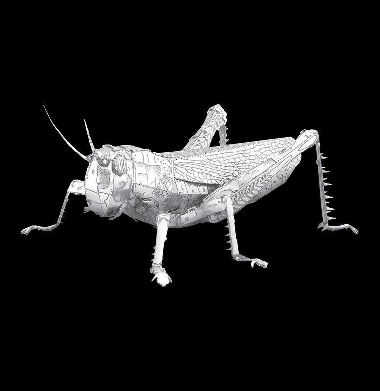 The Grasshopper DIY 3D model kit starts as flat metal sheets with detailed designs etched into each piece. The kit comes with easy-to-follow instructions, and no glue or solder is needed. Just snip out the pieces and bend the tabs to connect them.