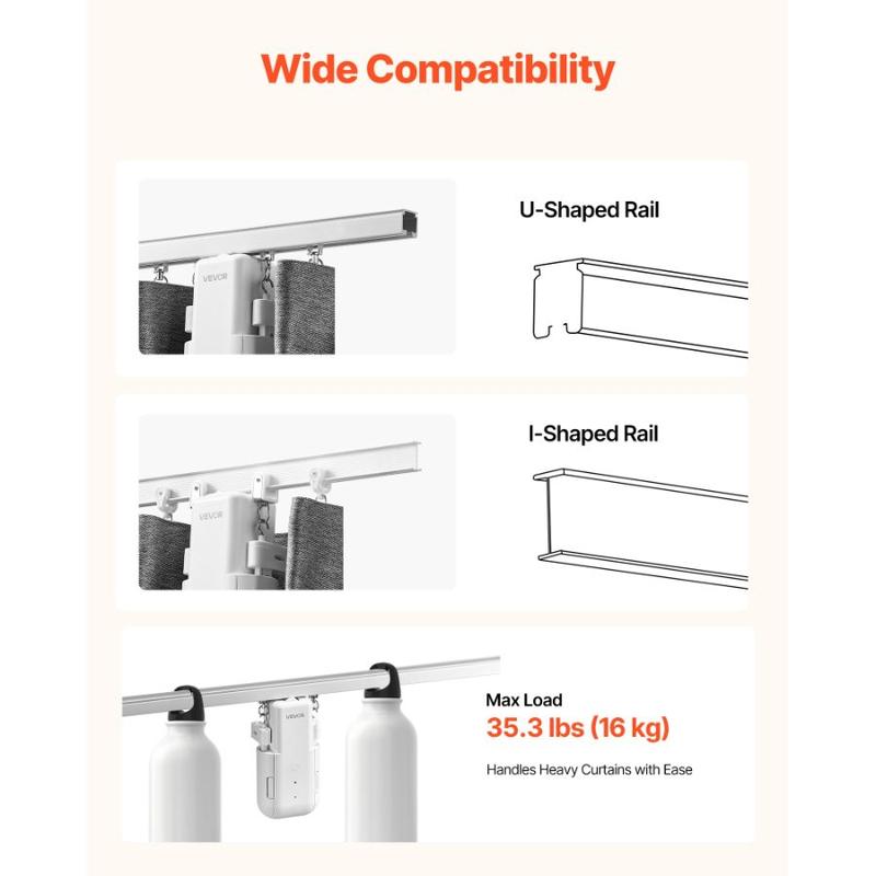 VEVOR Automatic Curtain Opener, APP and Remote Control, Hub Included, Electric Smart Curtain Opener Compatible with Alexa and Google Home, Timed Opening and Closing, Silent Mode, for Roman RodsVEVOR Automatic Curtain Opener, APP and Remote Control, Hub Included, Electric Smart Curtain Opener Compatible with Alexa and Google Home, Timed Opening and Closing, for U-shaped/I-shaped Rails Wear-Resistant Rollers High-Quality ABS Shell Light and Temperature Sensors Compatible with Smart