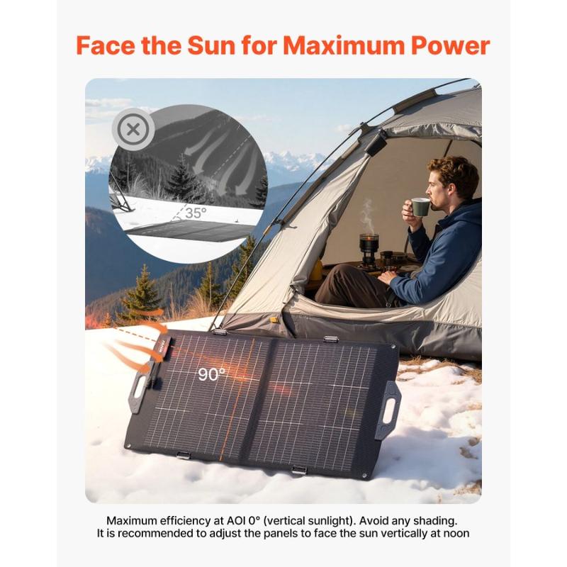 VEVOR 200W Foldable Solar Panel, 24 High - Efficiency Portable Monocrystalline Solar Panel Charger with MC4 Output, USB - A, Type - C DC Ports, IP67 Waterproof for Power Stations, Camping, Hiking TripsVEVOR 100W Bifacial Solar Panel, 16BB N-Type Foldable Monocrystalline Solar Panel Charger 24% Efficiency, Portable with MC4 Output, USB-A (QC3.0), Type-C & DC Ports for Power Stations Camping Hiking High Conversion Efficiency Power Multiple Devices Built to Last Foldable for