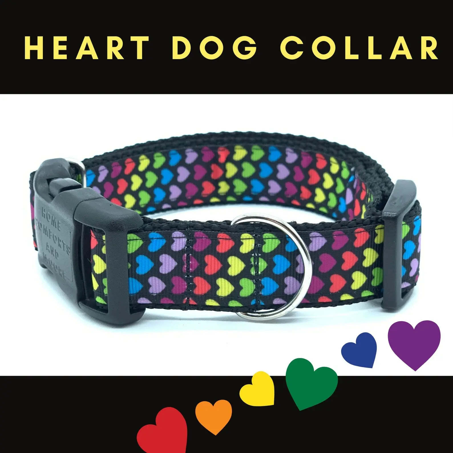 Add a pop of color and love to your furry friend's wardrobe with our Rainbow Hearts Dog Collar. Complete with a playful rainbow heart pattern, this collar is sure to turn heads on any walk. Show off your dog's colorful personality with this unique accessory. Woof!