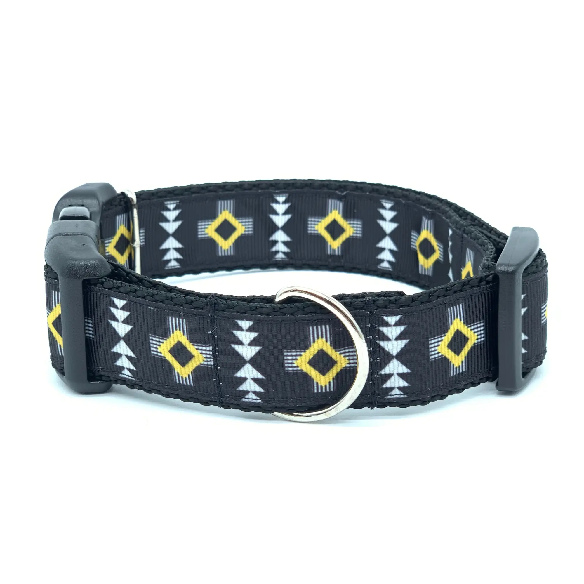 Introducing our Tribal Aztec Native Dog Collar, featuring a sleek black and yellow design that will make your pup the coolest on the block! Stand out from the pack with this stylish and eye-catching collar.