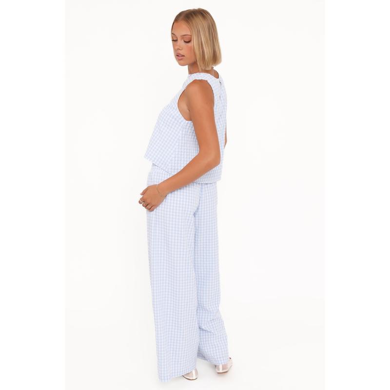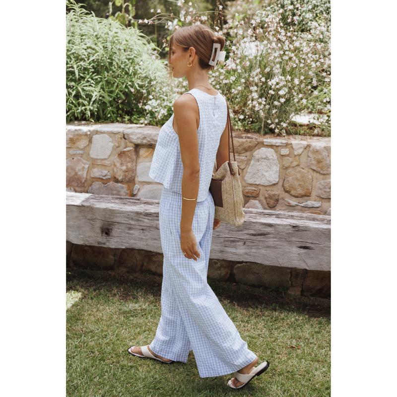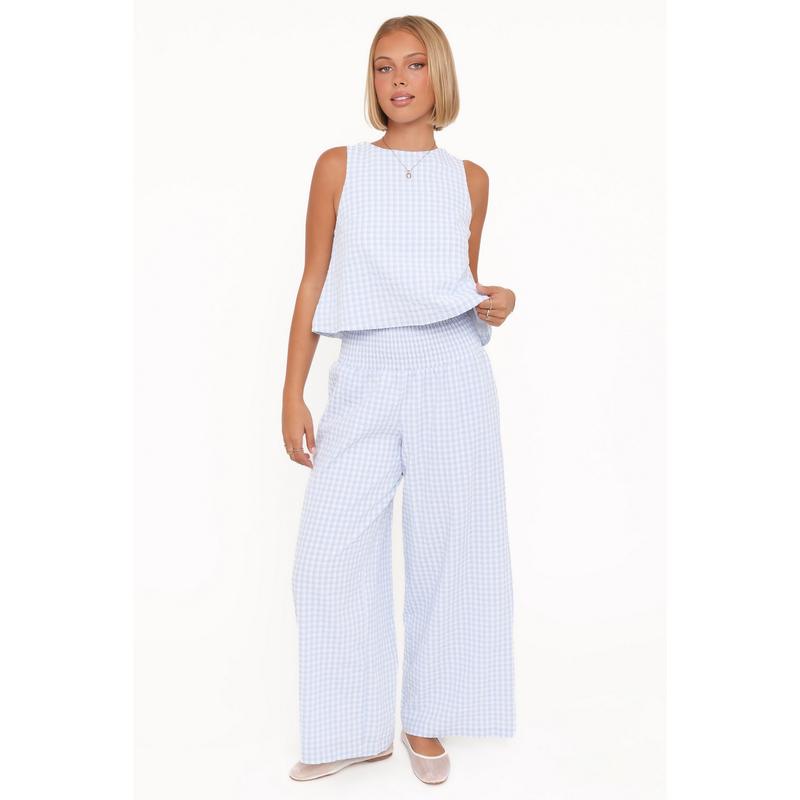 5. Jillian Smocked Pant Set - Blue Gingham