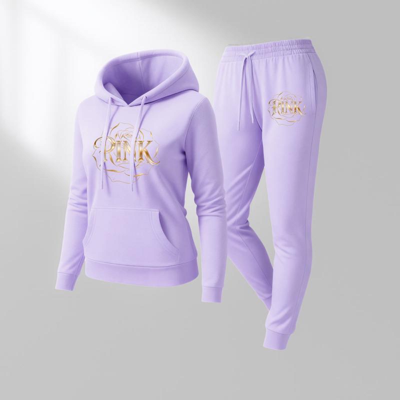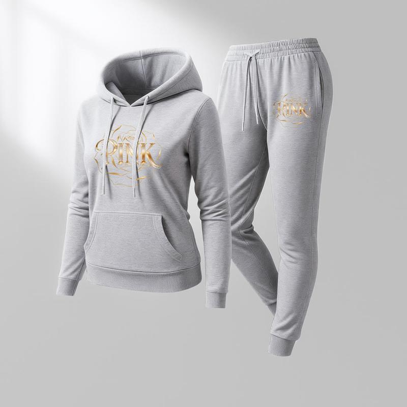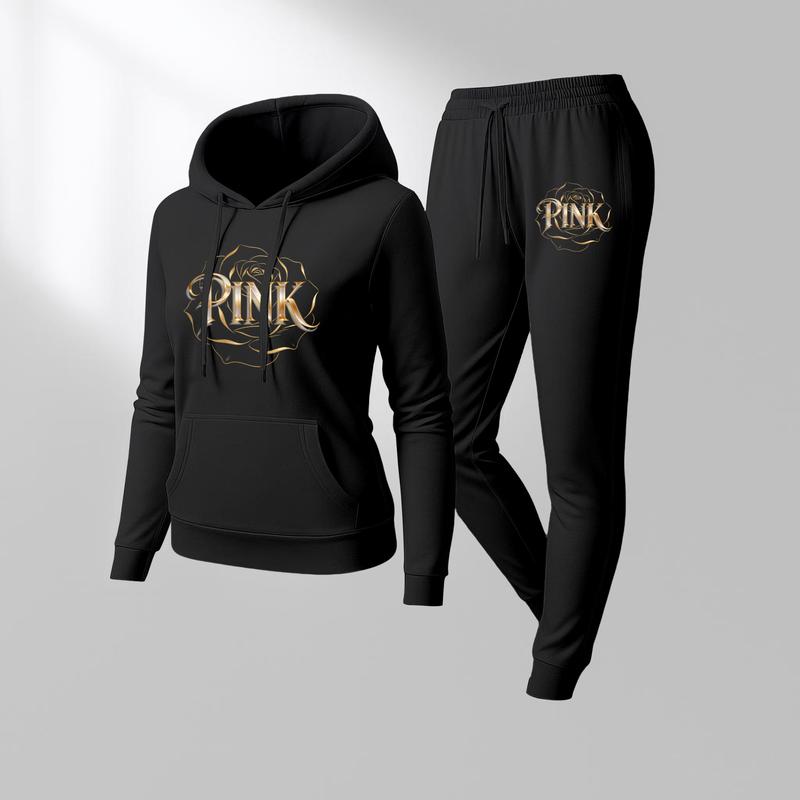 Printed Hoodie & Drawstring Sweatpants Set