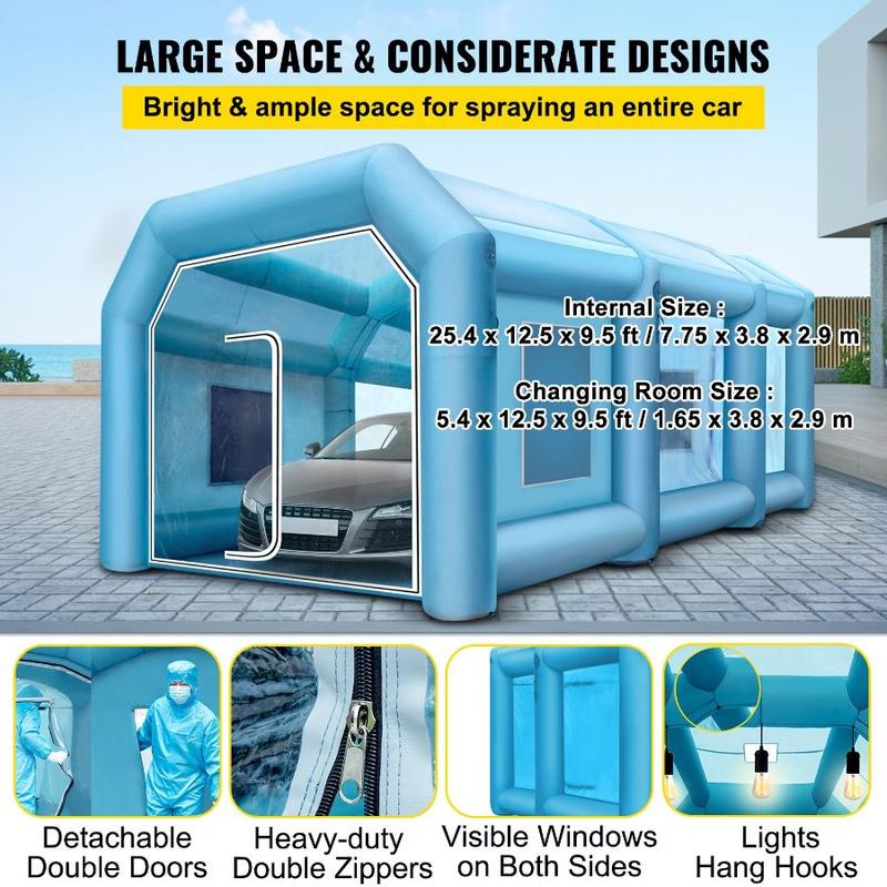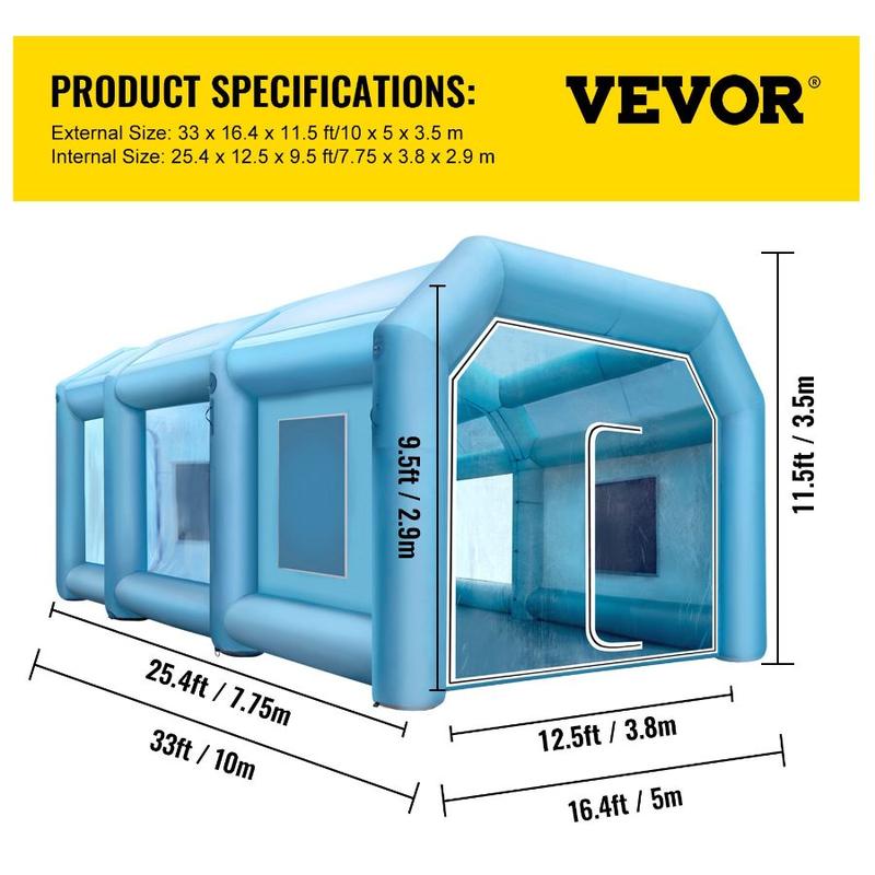 VEVOR Inflatable Paint Booth, 39.4x16.4x13.1 ft Spray Paint Booth, with 2 Powerful Blowers, Inflatable Spray Booth with Air Filter System, Car Paint Booth for Car Parking Tent Workstation, BlueVEVOR Inflatable Paint Booth, 33x16.4x11.5ft, Inflatable booth with 2 Powerful Blowers, Inflatable Spray Booth with Filter System, Portable Car Paint Booth for Car Parking Tent Workstation High-Strength Oxford Cloth & PVC Detachable Filtration Windows Attention to Detail Design Inflation &