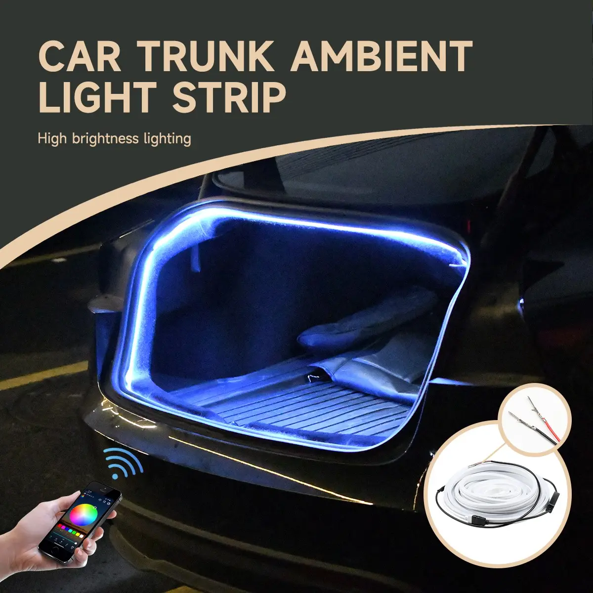【RGB Lighting】: Features vibrant RGB lighting options for customizable ambiance enhancement within your vehicle's rear trunk area.