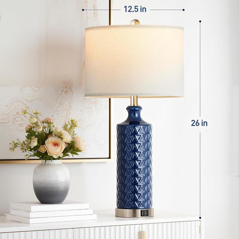 ·Modern Contemporary table lamp: designed with a textured ceramic lamp body and satin nickel base and topped with a white linen shade, this table lamp set of 2 adds a touch of modern style to your house decor and creates a warm, cozy atmosphere in your living place. Perfect for living room, bedroom, office, console table.