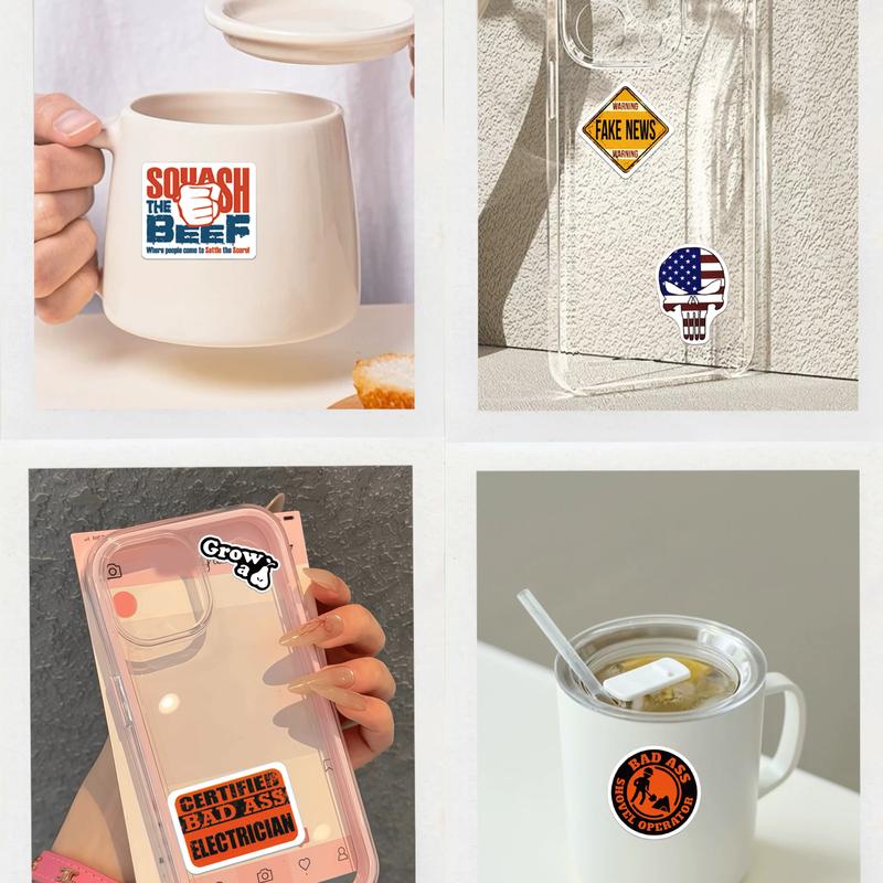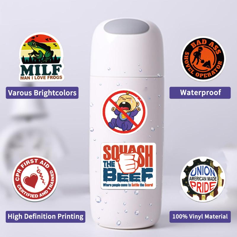 Material: Made of high-quality vinyl and durable PVC, this sticker pack is sharp and vibrant, guaranteed to impress. Made of durable PVC, it's waterproof, practical, and wear-resistant. It features crisp printing and an engaging graphic design. Vibrant colors, crisp lines, and clean fonts create a visually appealing experience. It's the perfect blend of clever, playful, and bold.