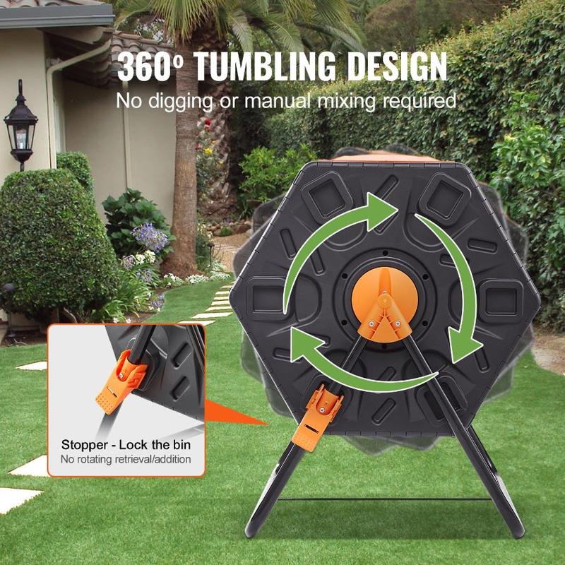 VEVOR Compost Bin, 43 - Gal Dual Chamber Composting Tumbler, Large Tumbling Rotating Composter with 2 Sliding Doors and Steel Frame, BPA Free Composter Bin Tumbler for Garden, Kitchen, Yard, OutdoorVEVOR Compost Bin, 37-Gal Dual Chamber Composting Tumbler, High Volume Two Rotating Chambers with 2 Sliding Door and Steel Frame, BPA Free Composter Bin Tumbler for Garden, Kitchen, Yard, Outdoor Dual-chamber Design 360° Tumbling Independent Efficiency at Its Best Guidelines for