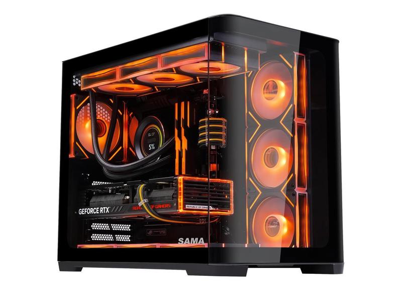SAMA 2851 ATX Mid-Tower PC Gaming Case, High-Airflow, Toolless Panels, Sturdy Curved Tempered Glass Front, 4 ARGB PWM Fan Pre-installed with Fan Hub, Black