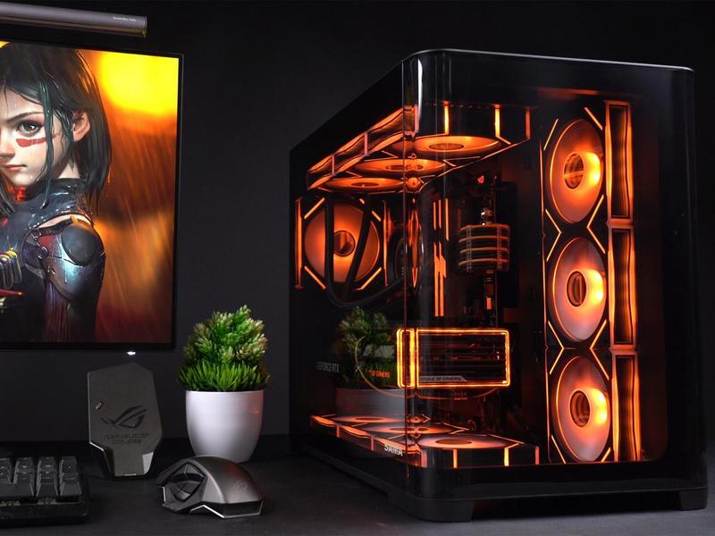 SAMA 2851 ATX Mid-Tower PC Gaming Case, High-Airflow, Sturdy Curved Tempered Glass Front, 4 ARGB PWM Fan Pre-installed with Fan Hub, Black