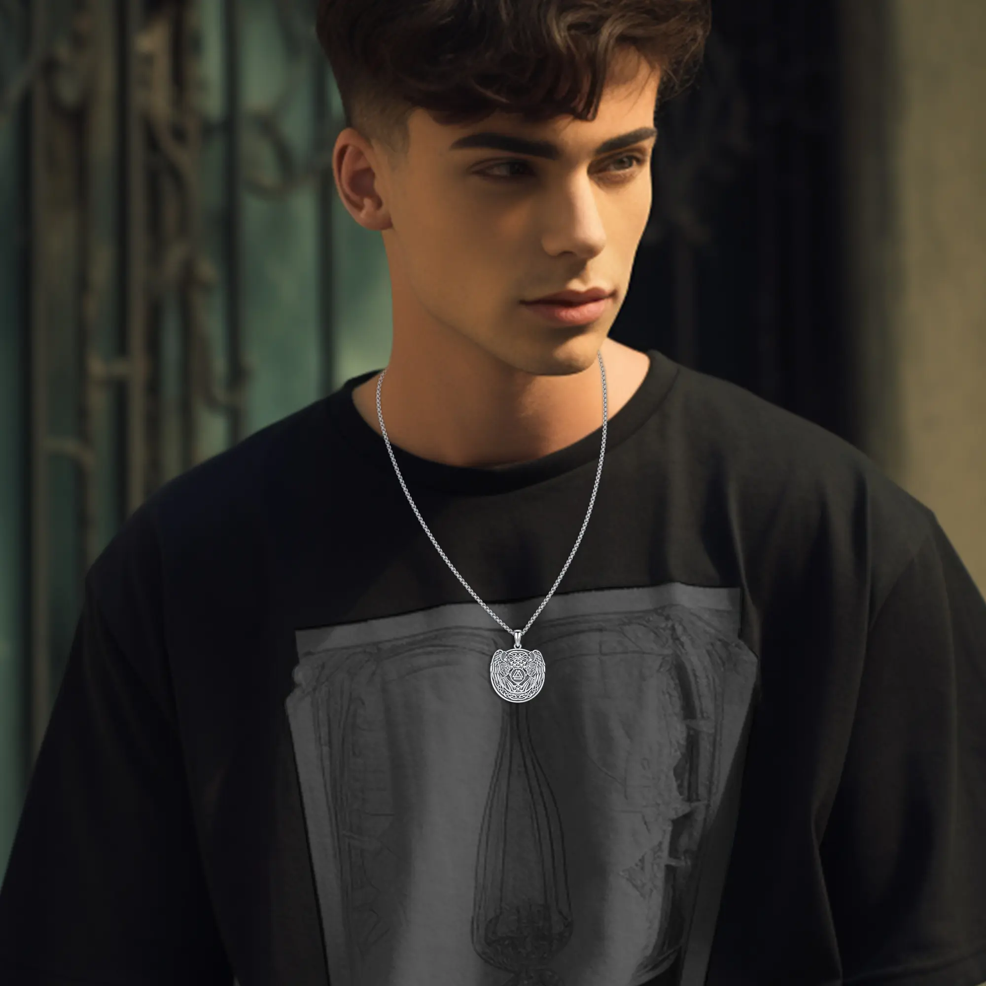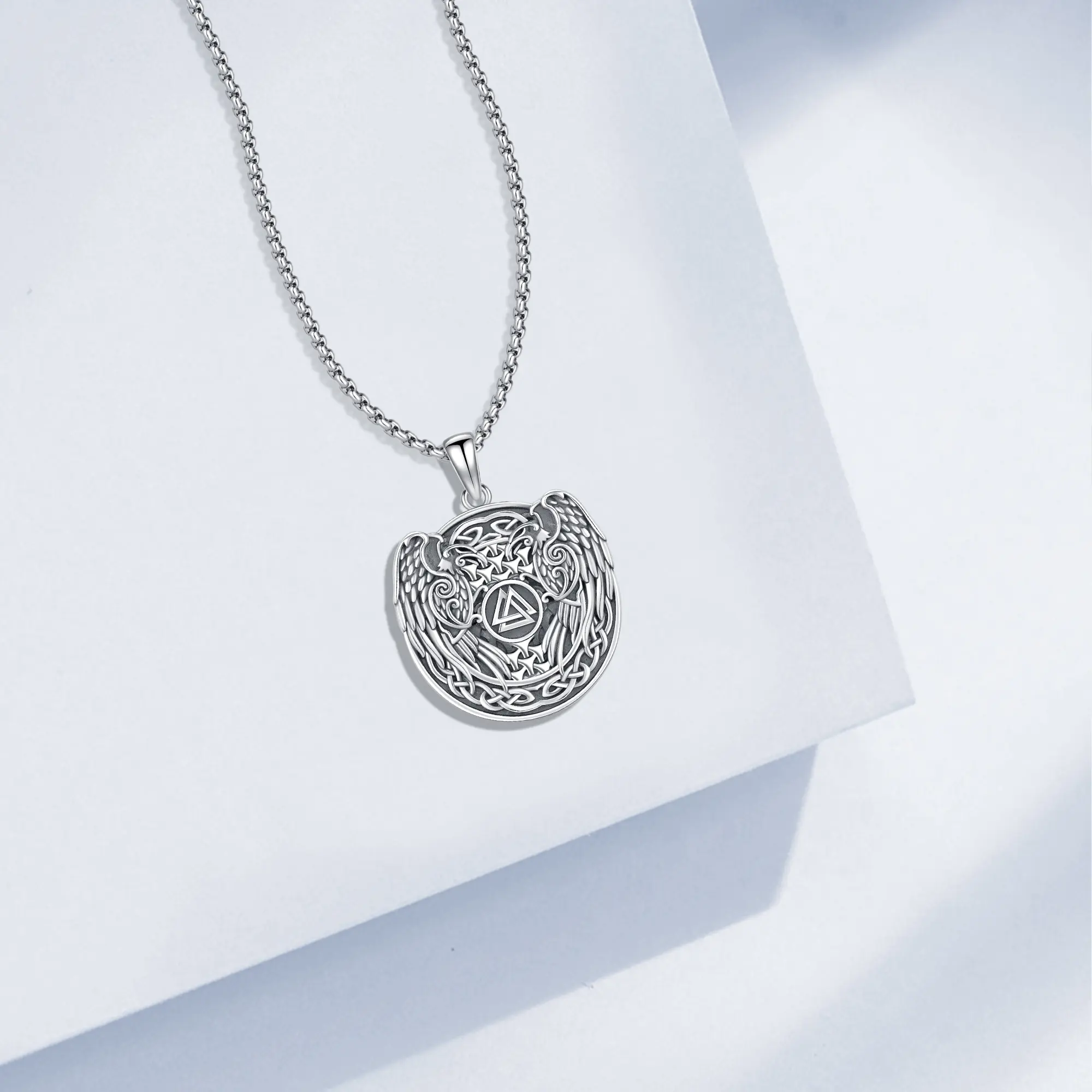 ·Viking Raven Jewelry: This raven necklace for men is designed with Viking elements, featuring a Raven representing command and direction, magical runes, a respected helmet symbolizing victory, and a Valknut knot. This Viking necklace has a protective significance.