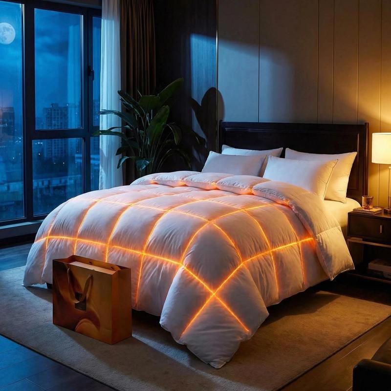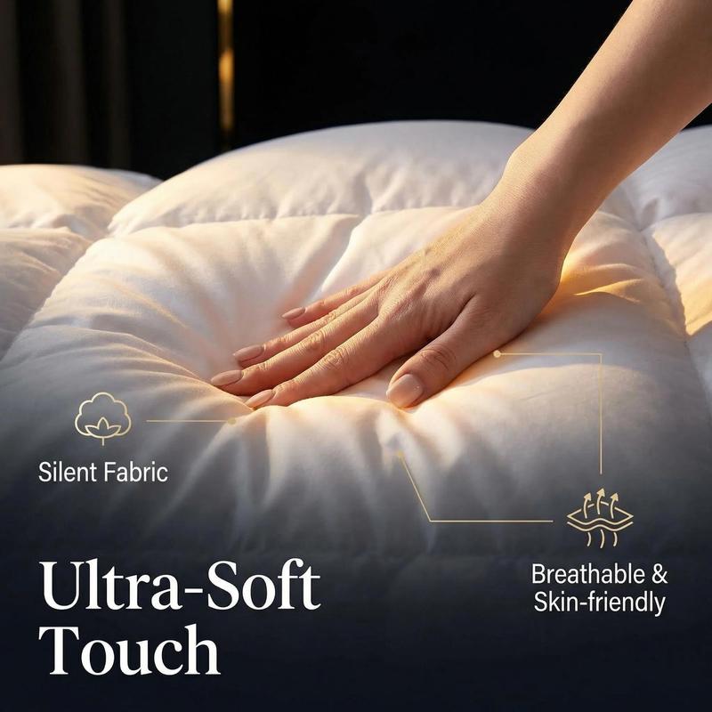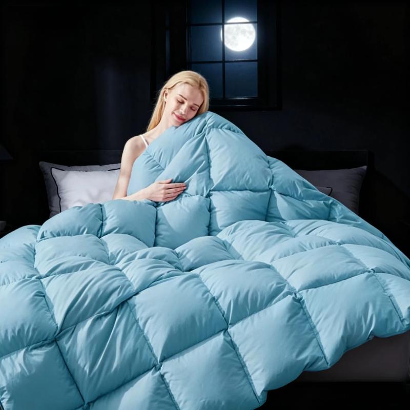 【Elegant Craftsmanship】With End-To-End sewn-through box construction, the down could be evenly distributed in its proper place and keeps the down from shifting. So you always have a plush, fluffy comforter that retains its shape. The comforter has 4 Corner Loops, which is very convenient for attaching a duvet cover and anchor the down comforter from shifting. All our comforters feature self-piping stitching to enhance their durability and prevent the down from sneaking.