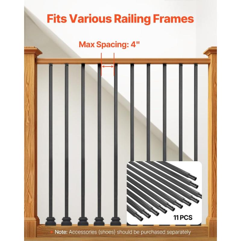 VEVOR 31 Pack 44 Inch Stair Balusters, Carbon Steel Square Hollow Spindles, Corrosion - Proof Indoor Deck Railing with Pre - Drilled Holes, Matte Black FinishVEVOR 31 Pack 44 Inch Stair Balusters, Carbon Steel Square Hollow Spindles, Corrosion - Proof Indoor Deck Railing with Pre - Drilled Holes, Matte Black Finish