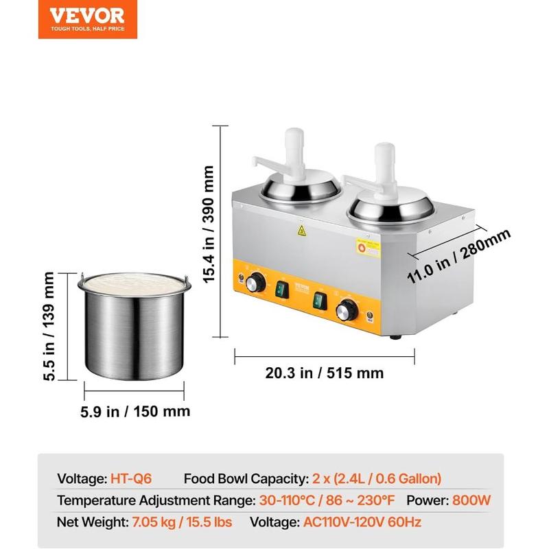 VEVOR Electric Bottle Warmer with Bottles, 0.8x2 LCommercial Cheese Dispenser, Hot Fudge Warmer 86 - 185 Temp Adjustable, Plastic Double Bottles Nacho Cheese Warmer, for Hot Fudge Cheese CaramelVEVOR Electric Bottle Warmer with Bottles, 0.8x2 LCommercial Cheese Dispenser, Hot Fudge Warmer 86 - 185 Temp Adjustable, Plastic Double Bottles Nacho Cheese Warmer, for Hot Fudge Cheese Caramel