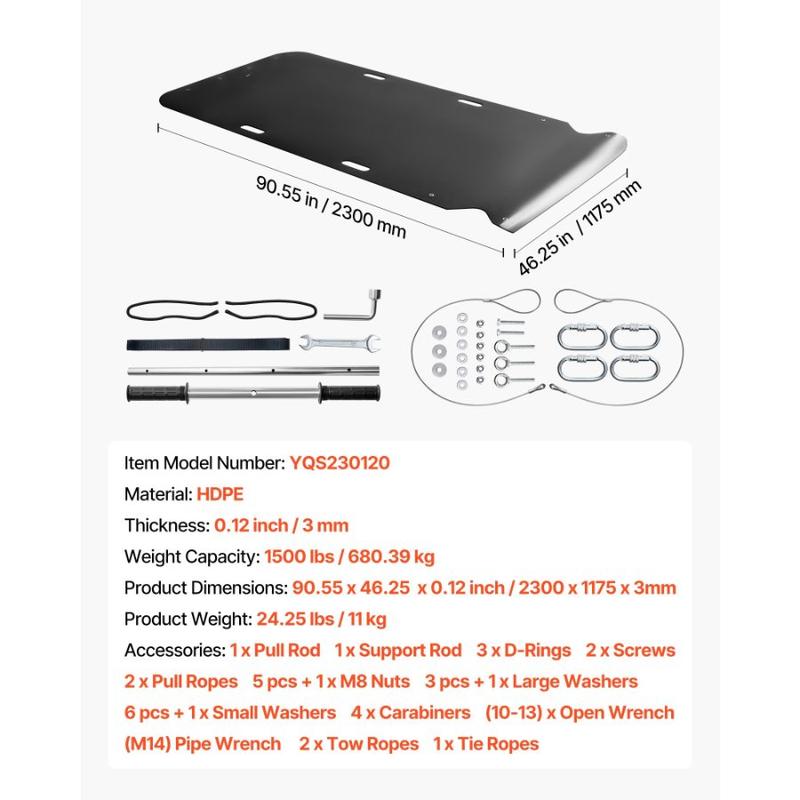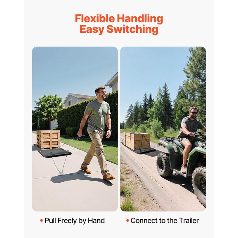 VEVOR Deer Drag Sled, 72.8x 22.8 in, 550lbs Heavy Duty Yard Utility Sled, Tear - Resistant PE Drag Glider Mat with Ropes Handle, Thickened Game Hauler for Firewood Ice Fishing Hauling HuntingVEVOR Yard Drag Sled, 90 x 46 in, 1500lbs Heavy Duty Utility Sled, HDPE Drag Glider with Ropes & Pull Cables, Hand & Vehicle Use Game Hauler for Firewood Ice Fishing, Compatible with ATVs UTVs Tractors Ideal for Heavy-Duty Hauling Wide Vehicle Compatibility High Tensile Strength Waterproof &