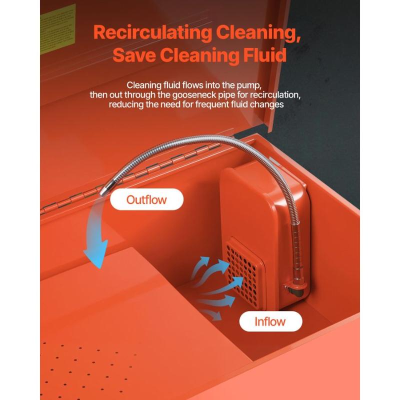 VEVOR Parts Washer 40 - Gallon, 17 Gallon Solvent Capacity, 1 Gallon per Minute Max Pump Output, Steel Cabinet Electric Pump Automotive Parts Washer Cleaner for Wheel Bearings, Gears, and CarburetorsVEVOR Parts Washer 40-Gallon, 17 Gallon Solvent Capacity, 1 Gallon per Minute Max Pump Output, Steel Cabinet Electric Pump Automotive Parts Washer Cleaner for Wheel Bearings, Gears, and Carburetors Efficient Cleaning Professional Cleaning & Excellent Results Large Parts